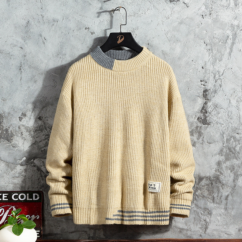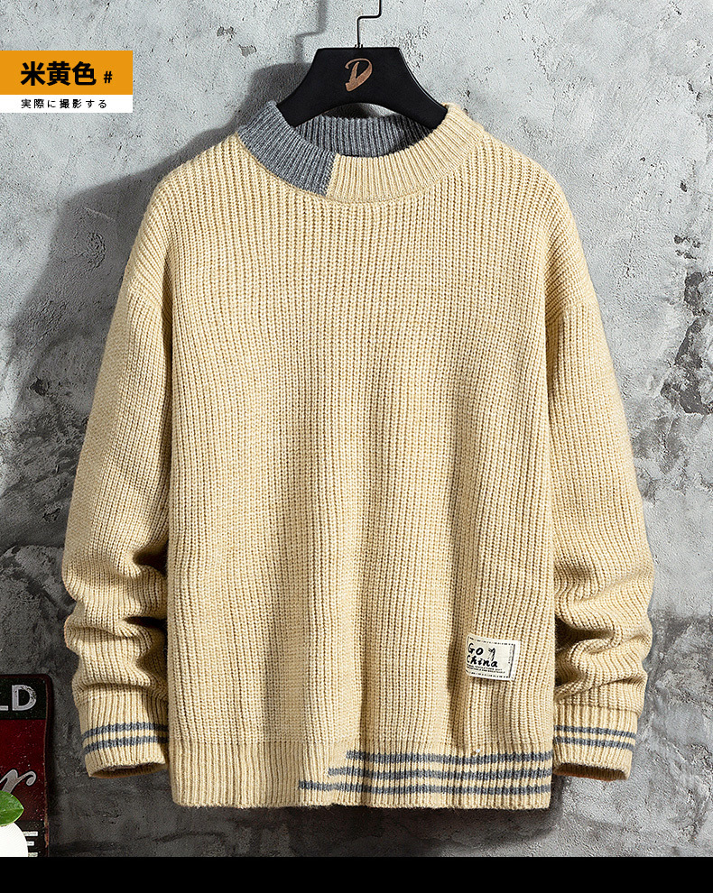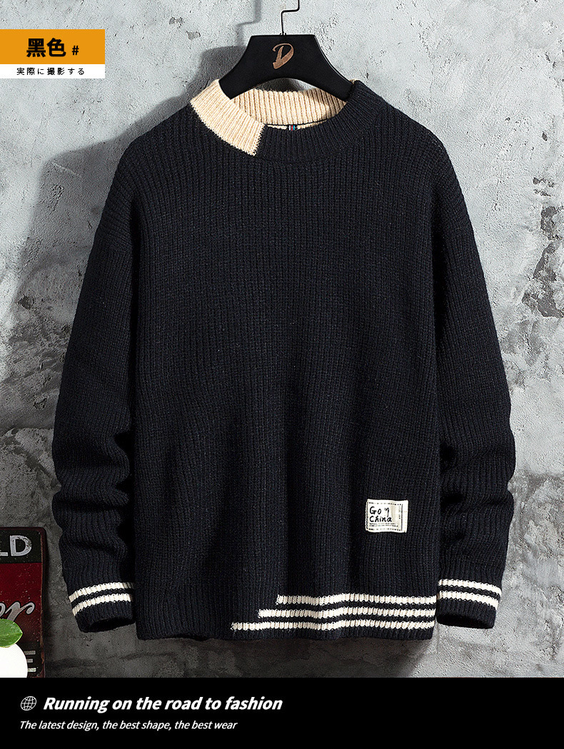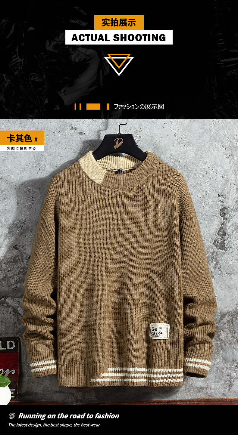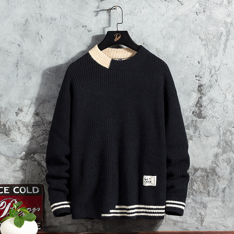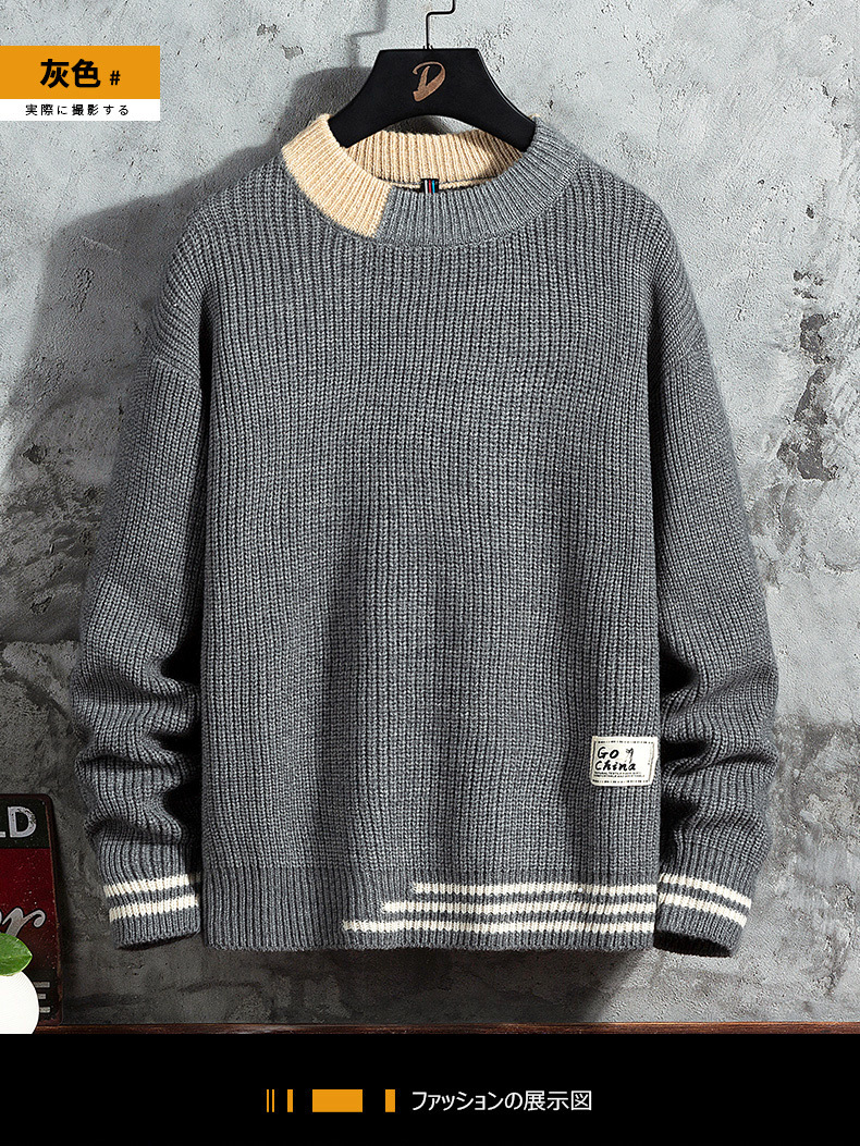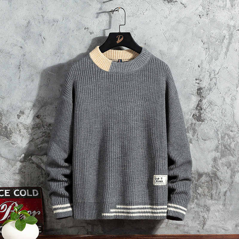 스웨터 남성용 2022 가을 겨울 풀오버 새로운 한국 스타일 트렌디 두꺼운베이스 셔츠 남성용 느슨한 라운드 넥 니트 셔츠스토어 가기