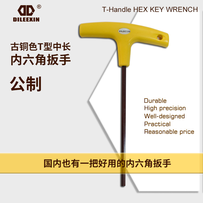 Dingli 제조 업체 T 형 알렌 렌치 미터법 싱글 길이 플랫 S2 고 탄소강 플러스 하드 레드 도매