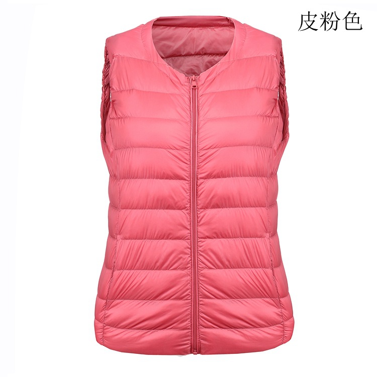 여성용 크로스보더 경량 다운 조끼, 짧은 라운드 넥 화이트 오리 다운 조끼, 다용도 대형 내부 다운 라이너 조끼스토어 가기