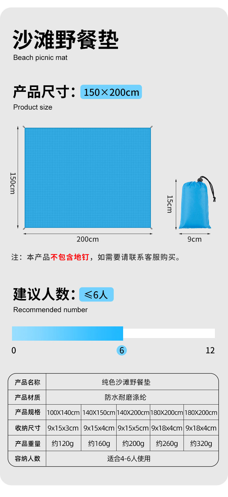 솔리드 컬러 비치 매트 휴대용 야외 피크닉 매트 방습 바닥 매트 접는 잔디 나들이 캠핑 매트 공장 도매스토어 가기