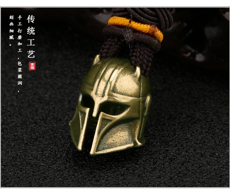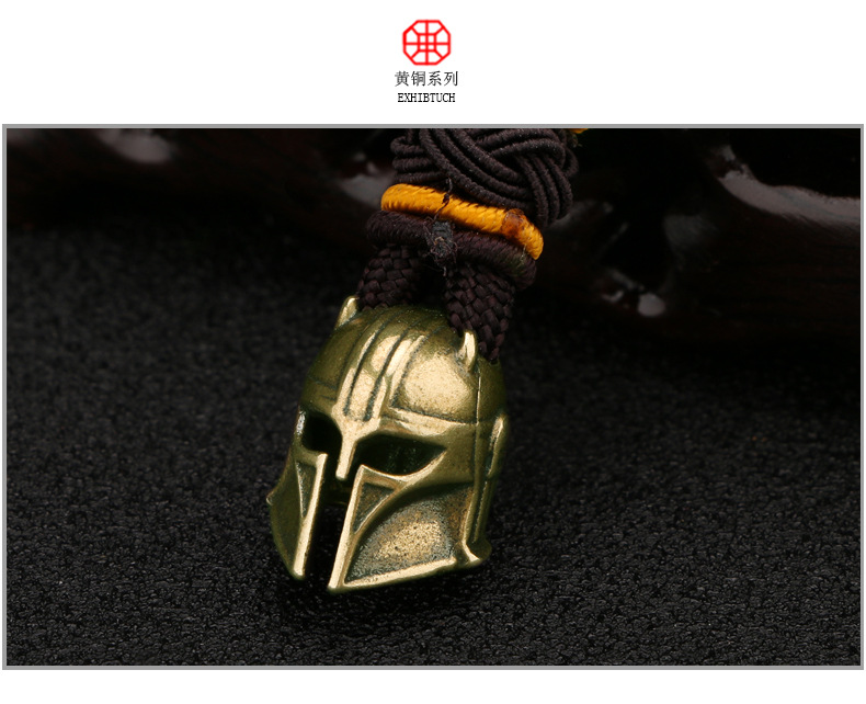 황동 손으로 만든 뿔 헬멧 펜던트 골동품 오래된 스파르타 전사 액세서리 diy 키 체인스토어 가기