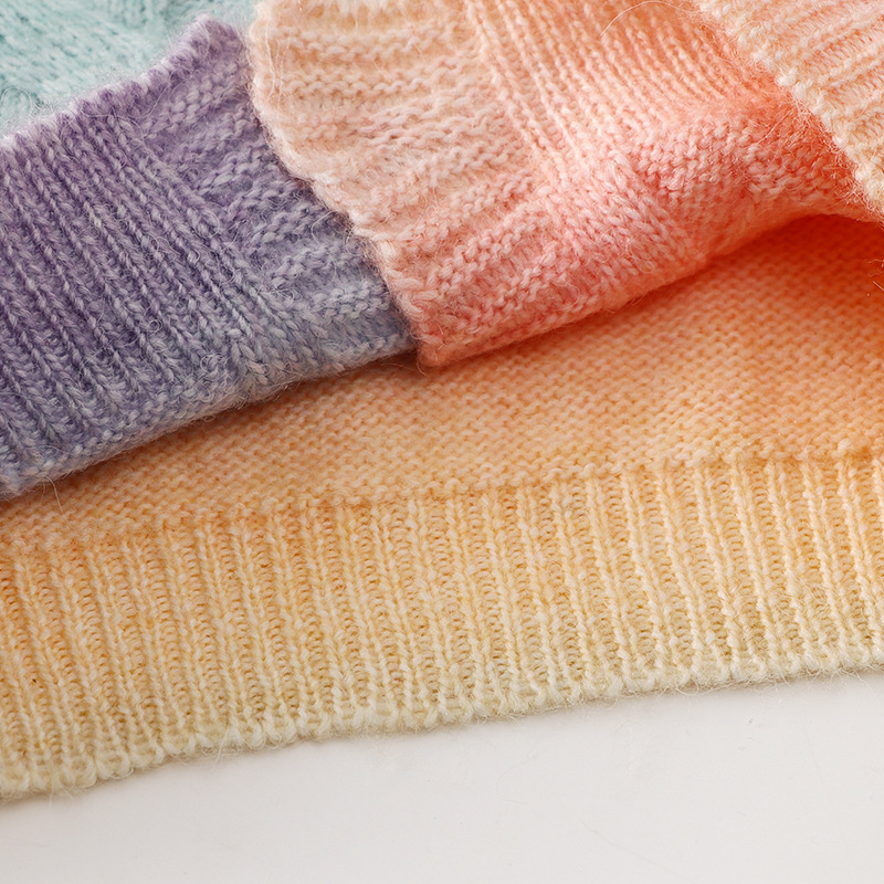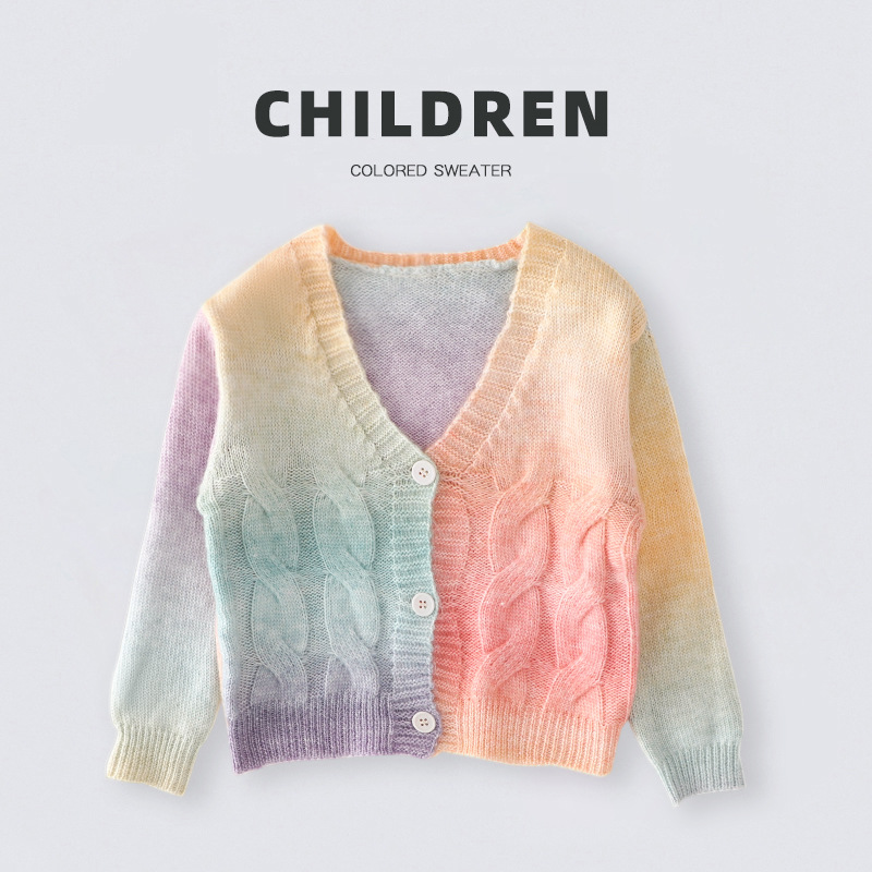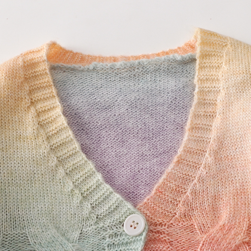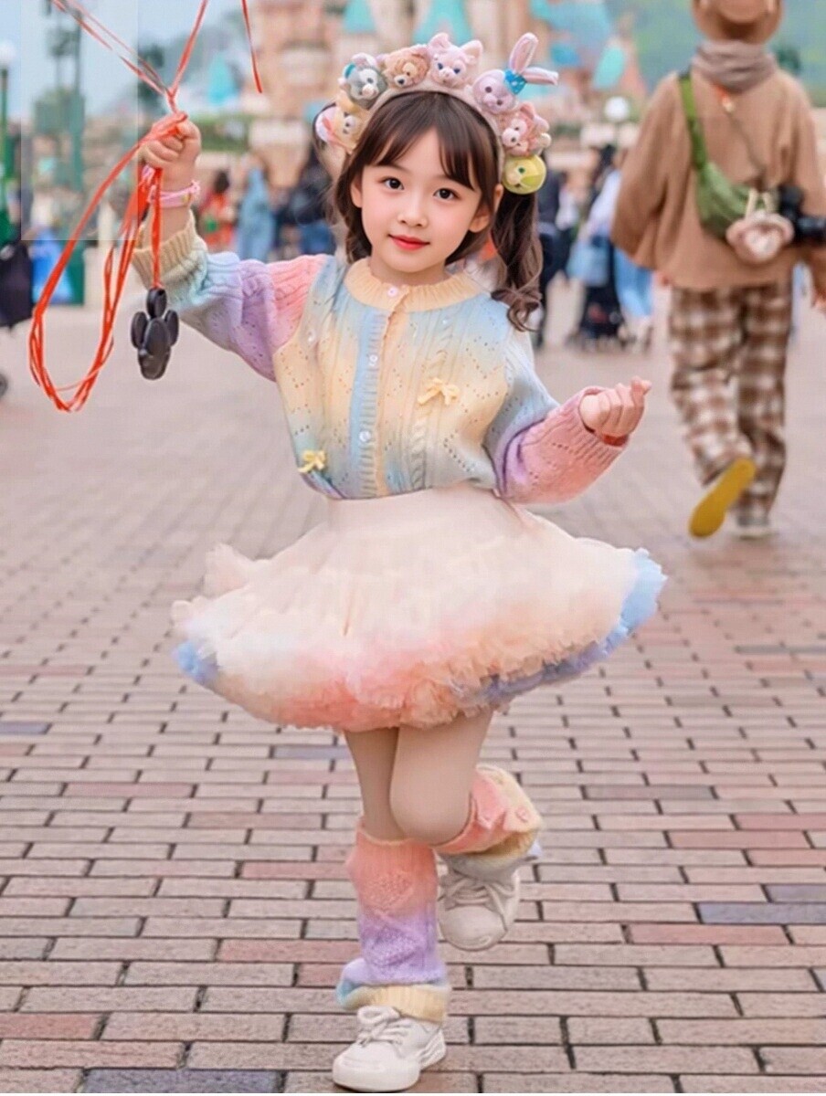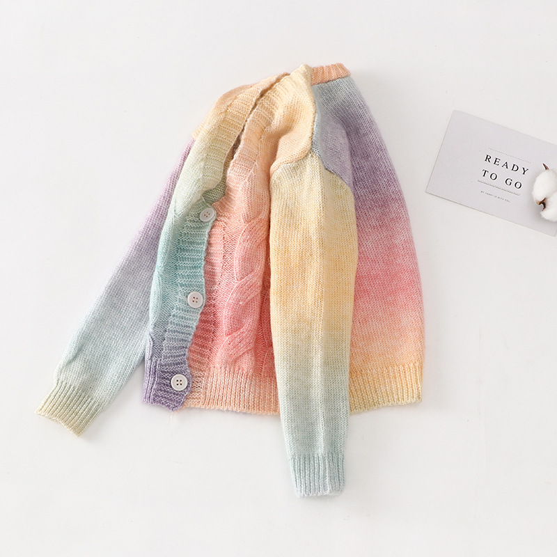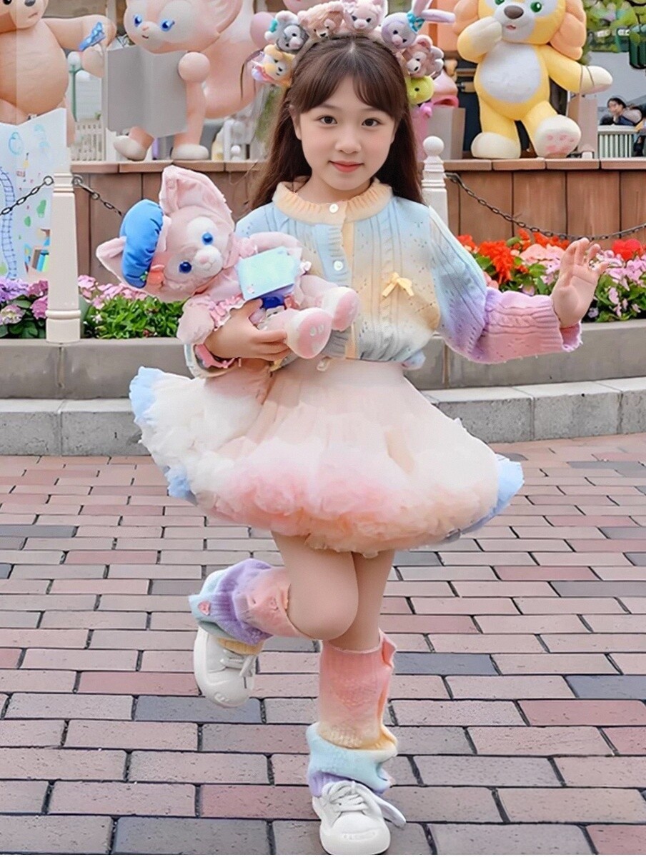 이우 리프 소녀의 가을 레인보우 니트 가디건 재킷 TUTU 스커트 매칭 탑 메쉬 하프 스커트스토어 가기
