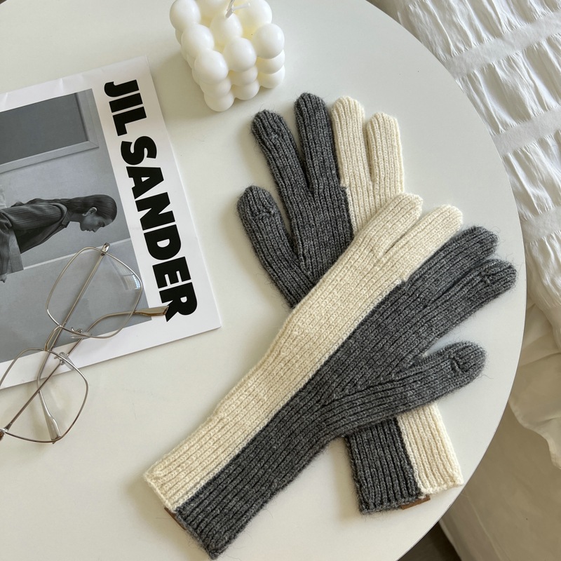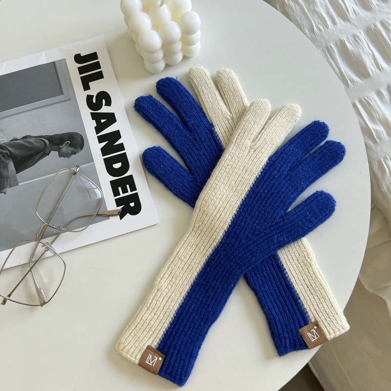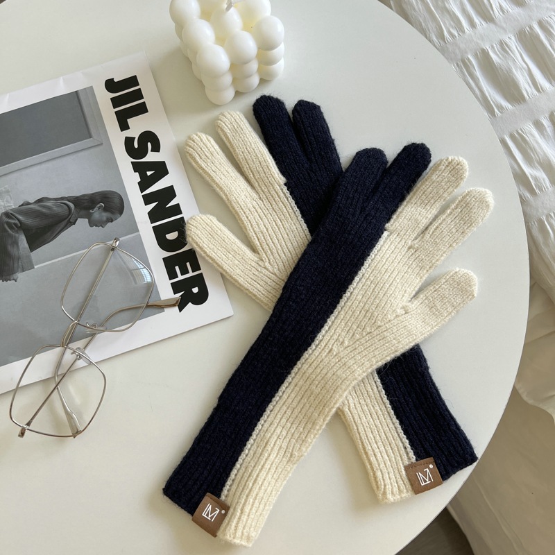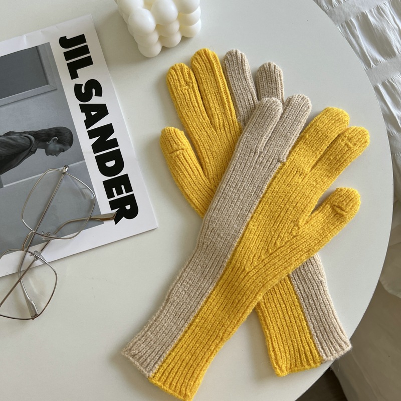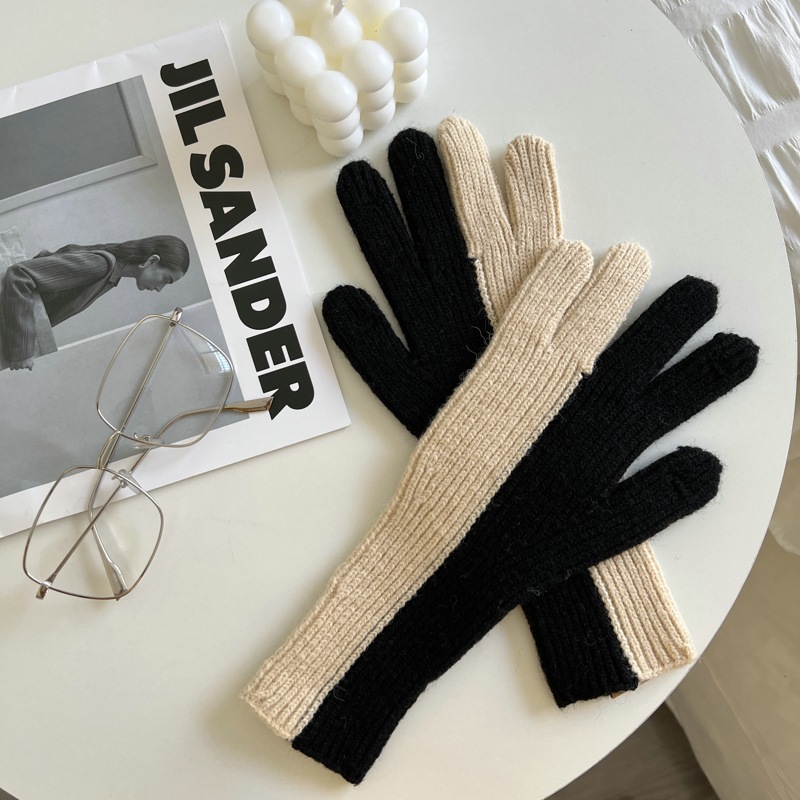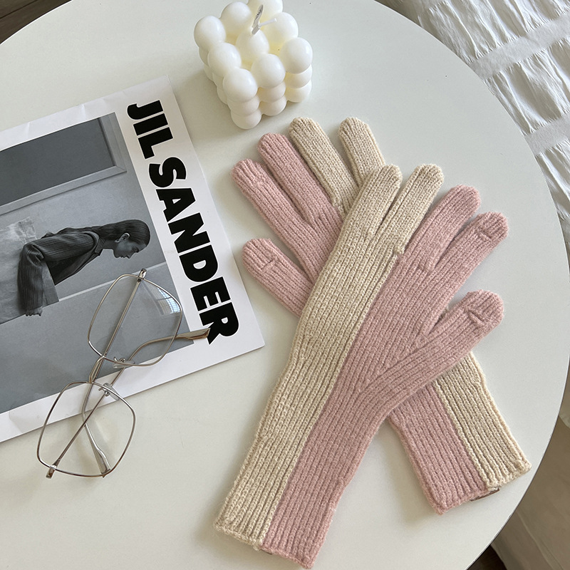2 색 니트 울 장갑 여성용 귀여운 가을과 겨울 이슬 두 손가락 한국식 겨울 사이클링 따뜻한 방한 스플릿 핑거 커플