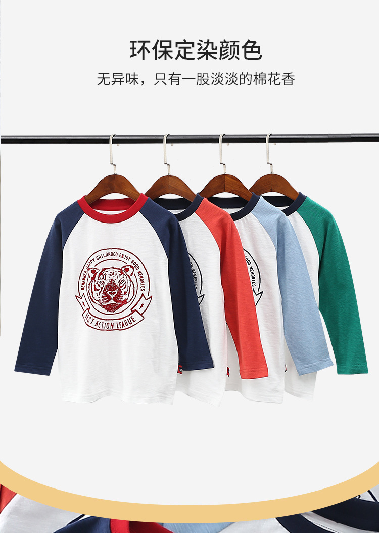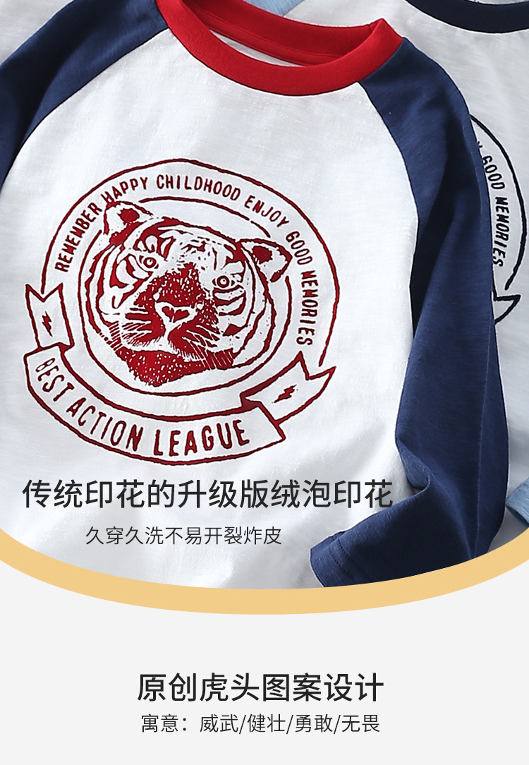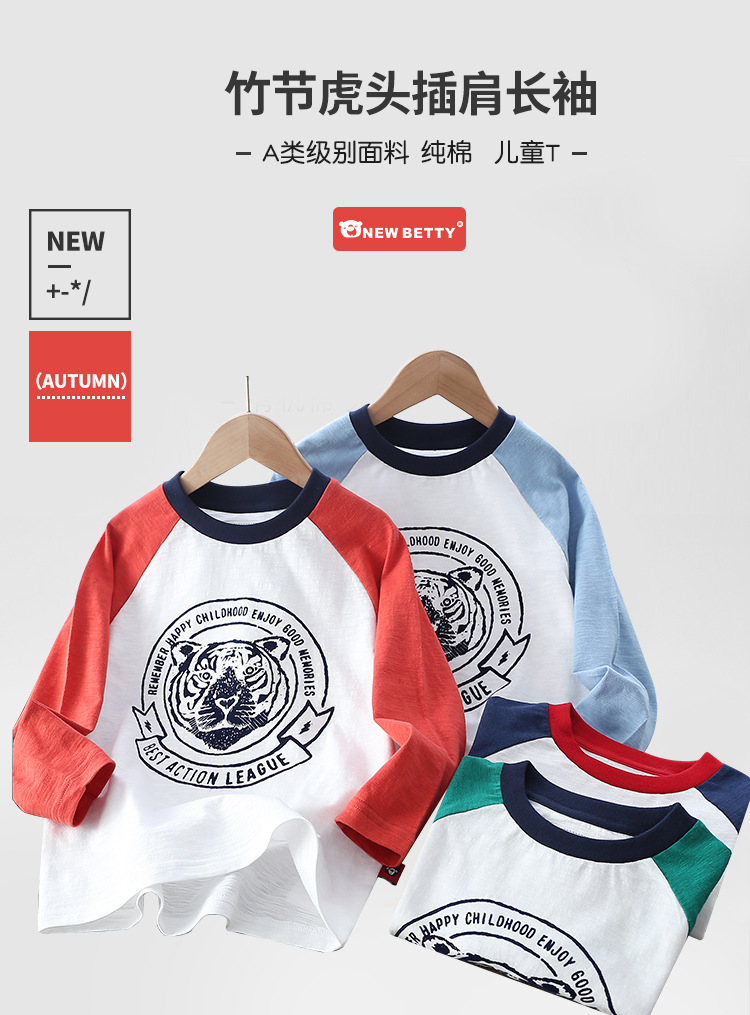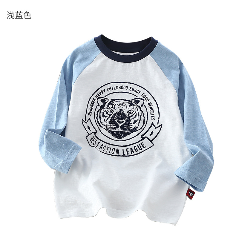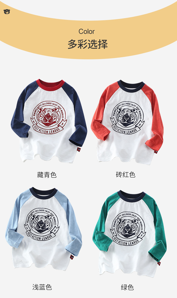 Xiong Zai Jia Chun 새로운 어린이 대나무 면베이스 셔츠 호랑이 머리 어깨 소년 소녀를위한 긴 소매 티셔츠 한국 정상스토어 가기