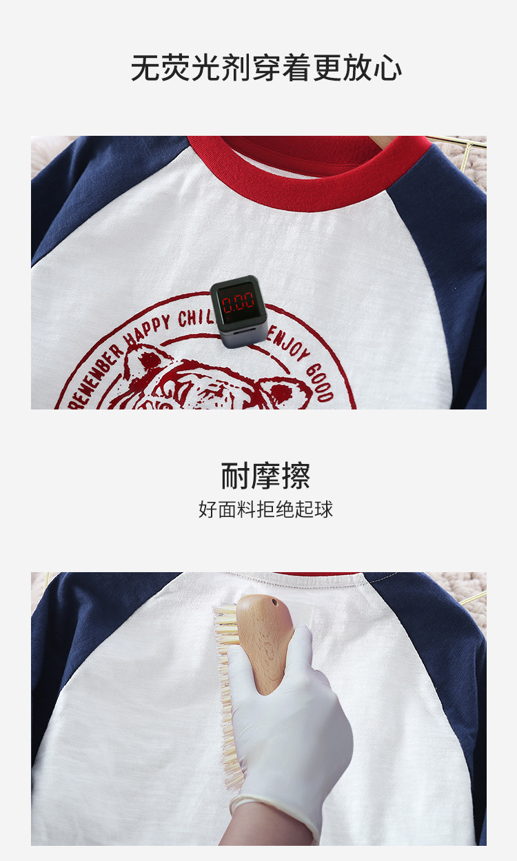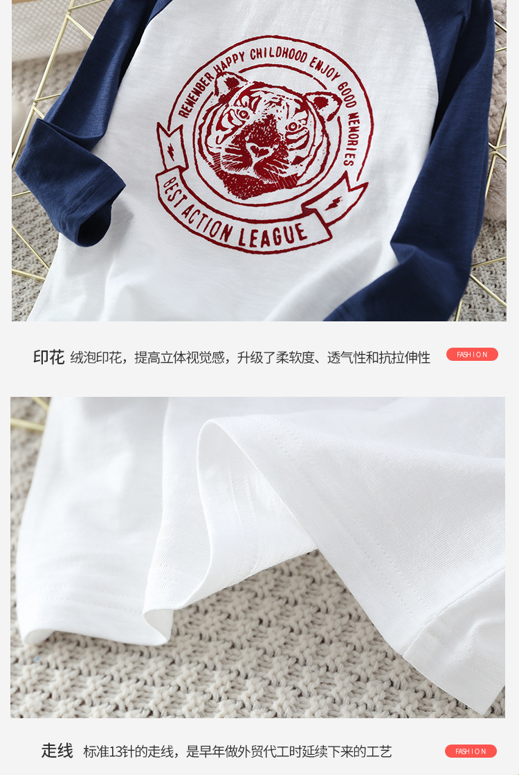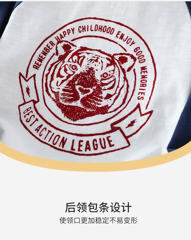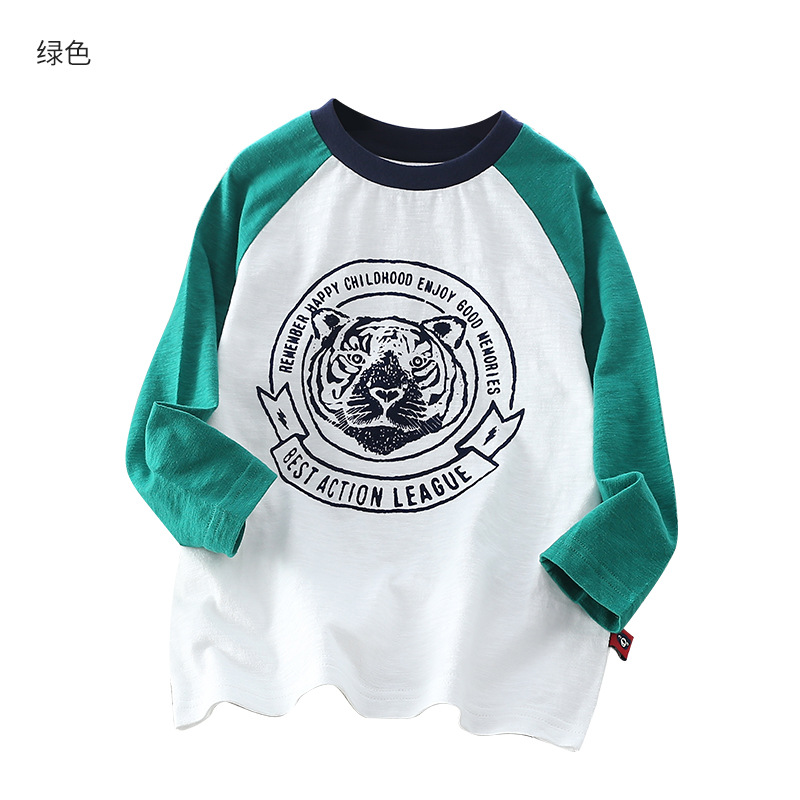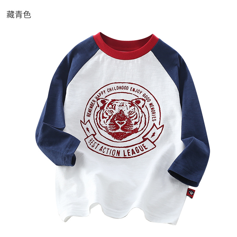 Xiong Zai Jia Chun 새로운 어린이 대나무 면베이스 셔츠 호랑이 머리 어깨 소년 소녀를위한 긴 소매 티셔츠 한국 정상스토어 가기