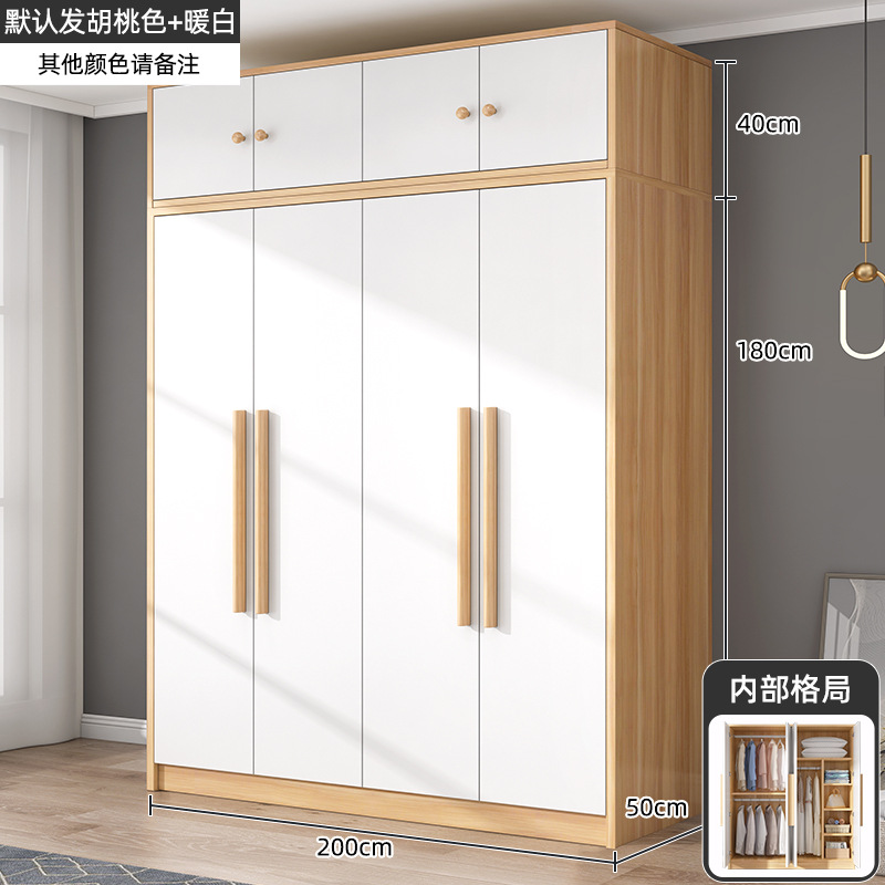 • [네 문] 160*50*180 가벼운 호두 + 따뜻한 흰색 + 2 문