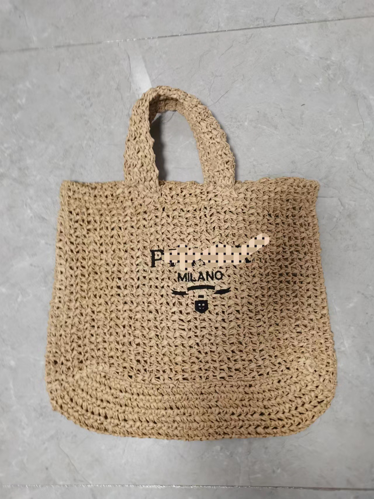 P 가족 2022 여성의 새로운 줄무늬 자수 손으로 짠 밀짚 휴대용 대형 비치 가방 숄더백 토트 백스토어 가기