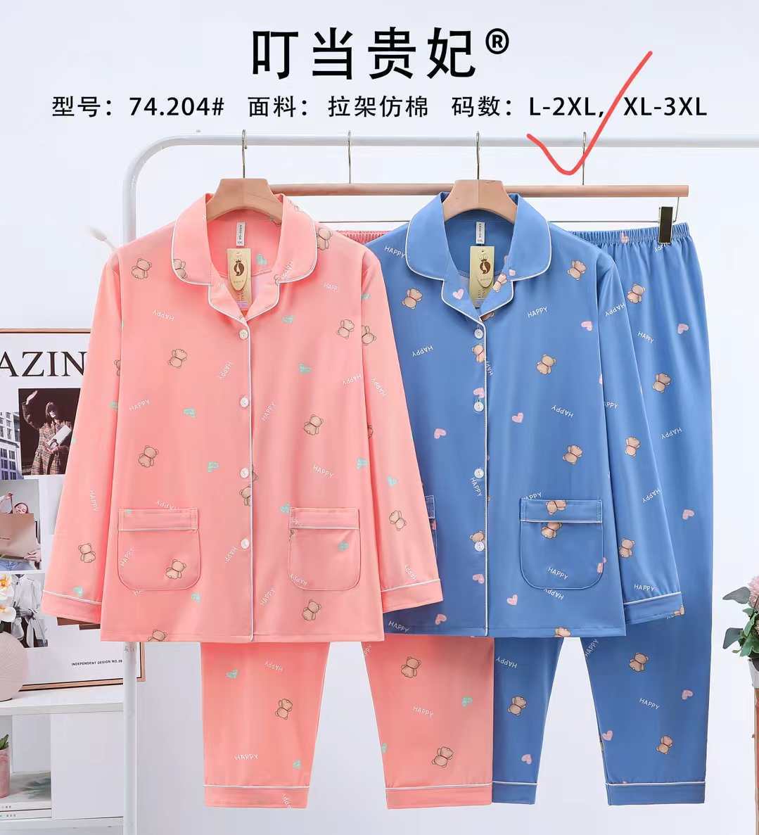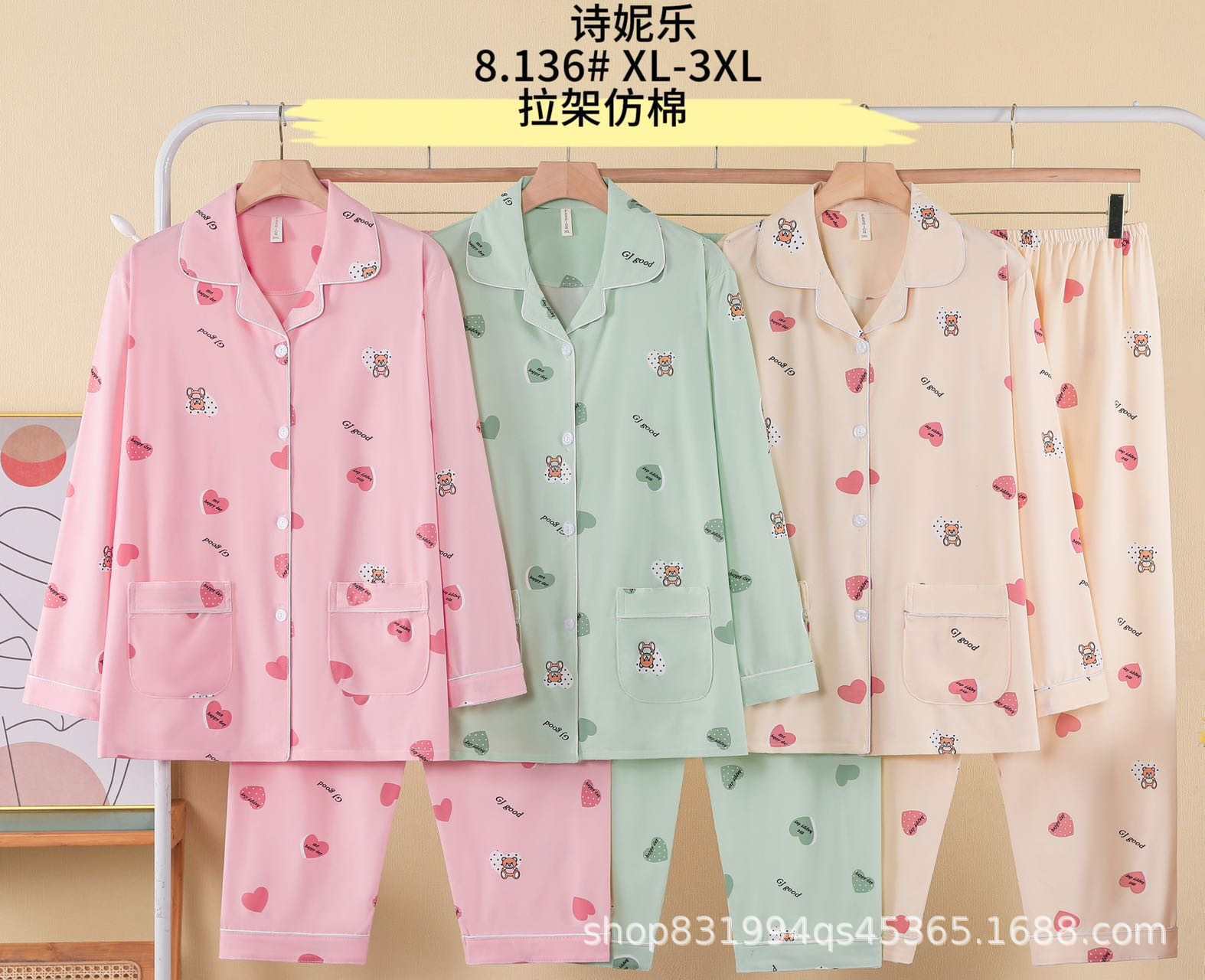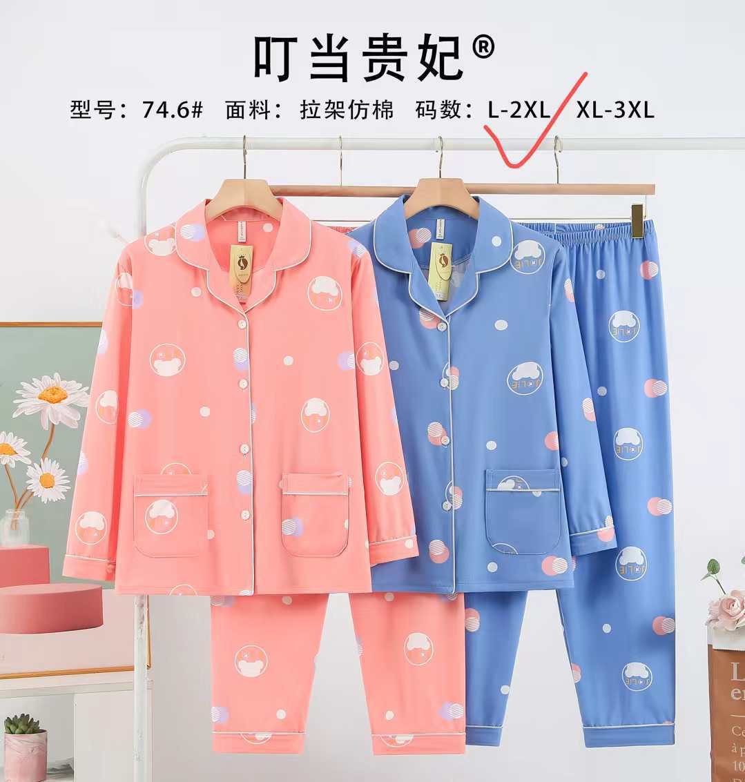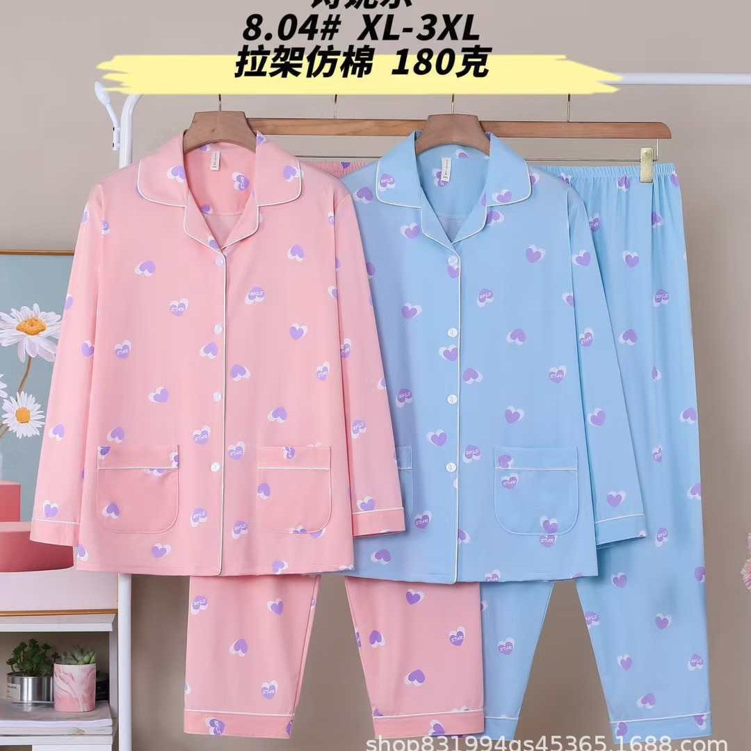 Longge Castle 잠옷 여자의 긴팔 봄과 가을 카디건 플러스 사이즈 느슨한 플러스 뚱뚱한 얇은 가정 의류 징글 제국 첩 모조 면스토어 가기