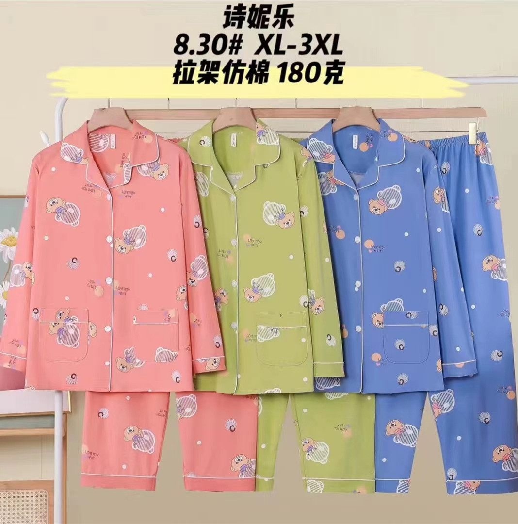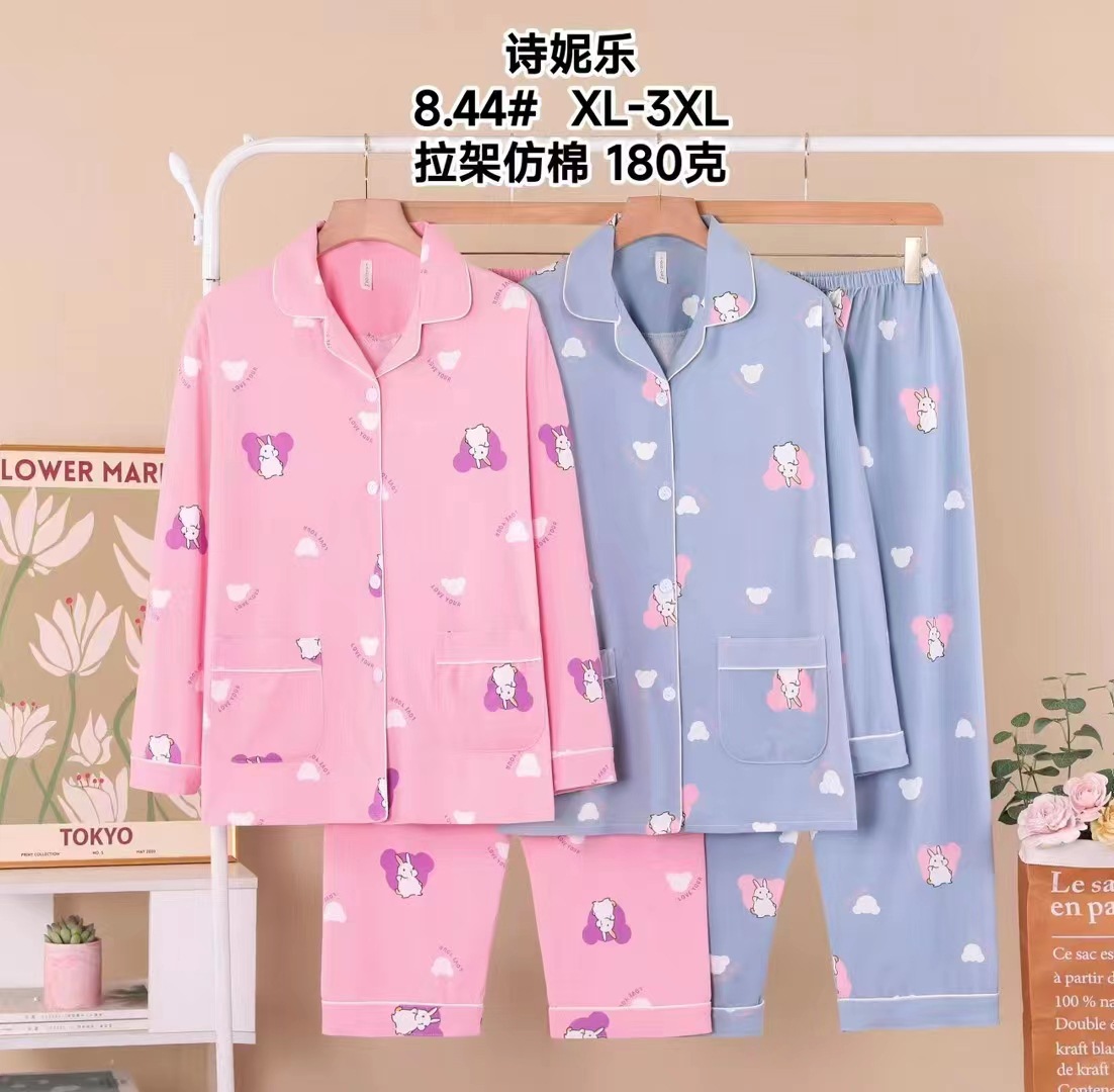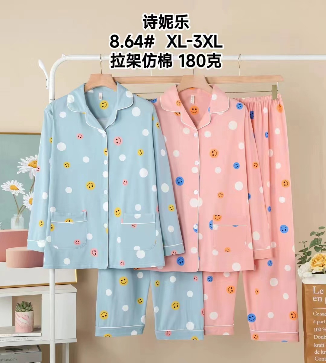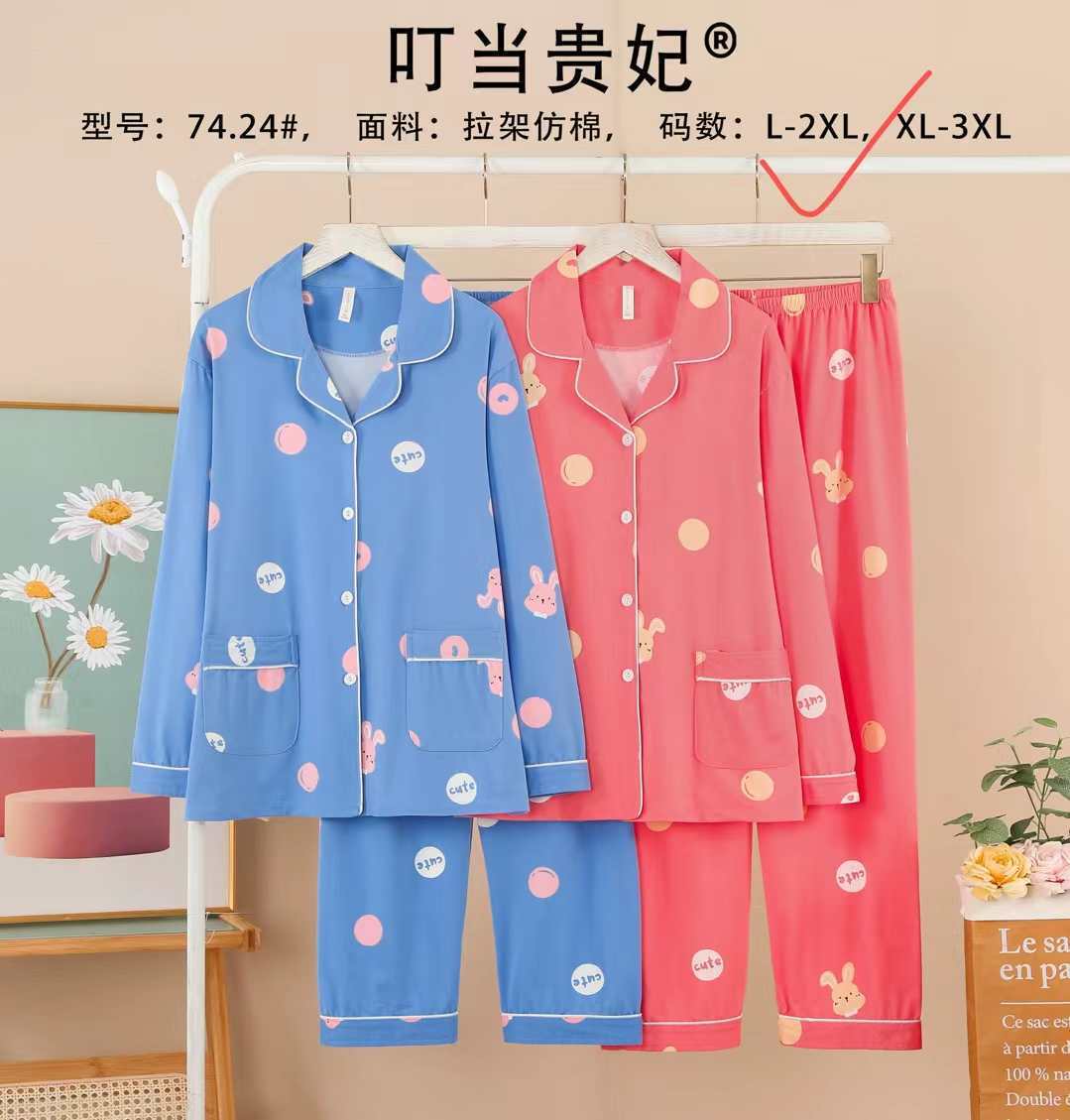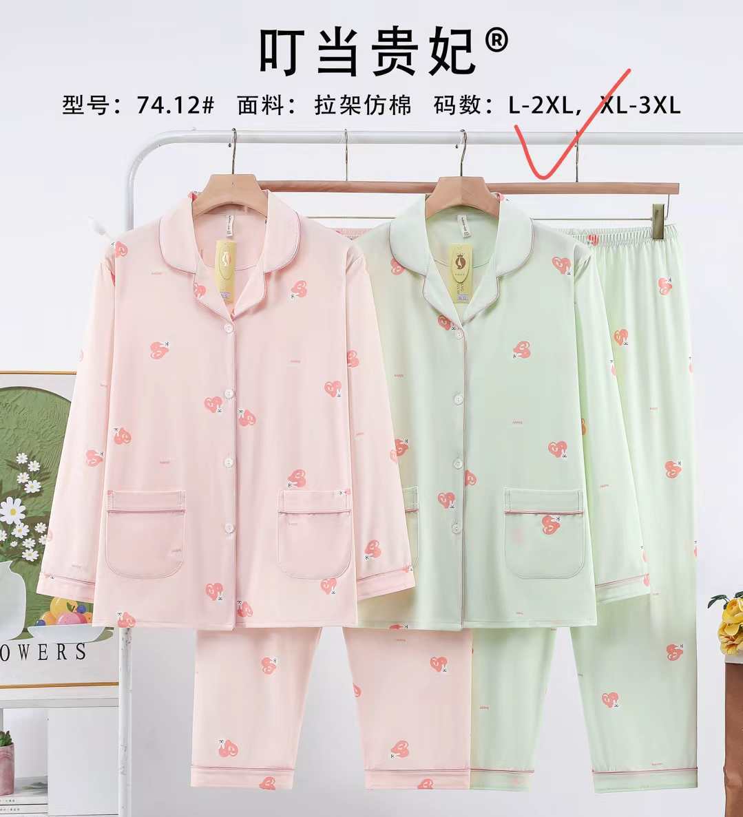 Longge Castle 잠옷 여자의 긴팔 봄과 가을 카디건 플러스 사이즈 느슨한 플러스 뚱뚱한 얇은 가정 의류 징글 제국 첩 모조 면스토어 가기