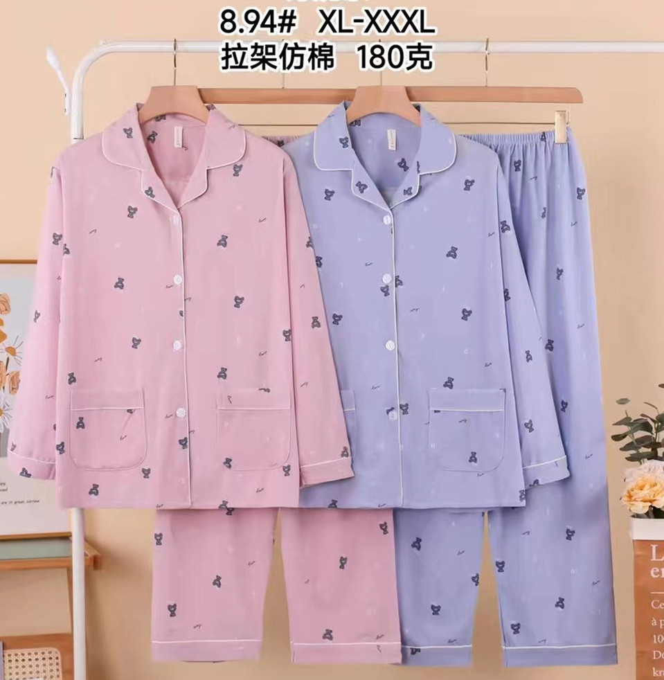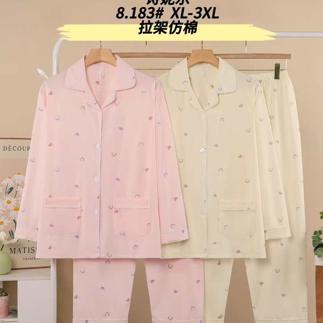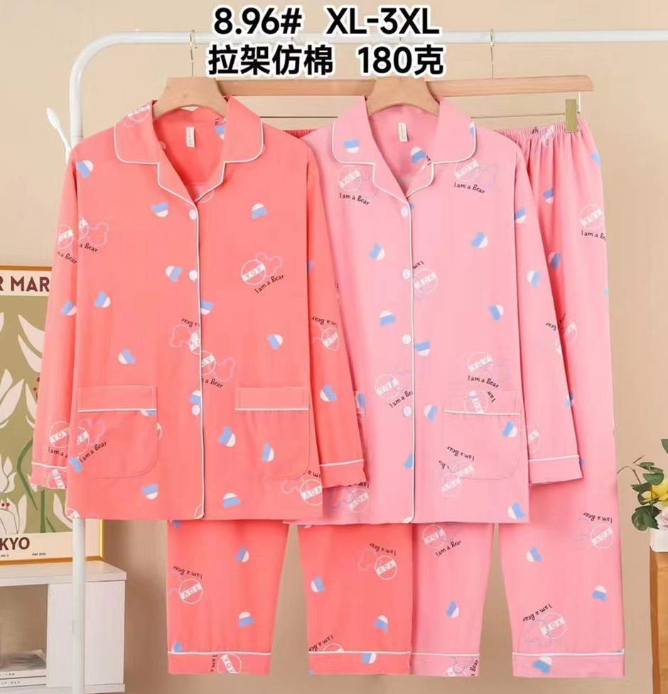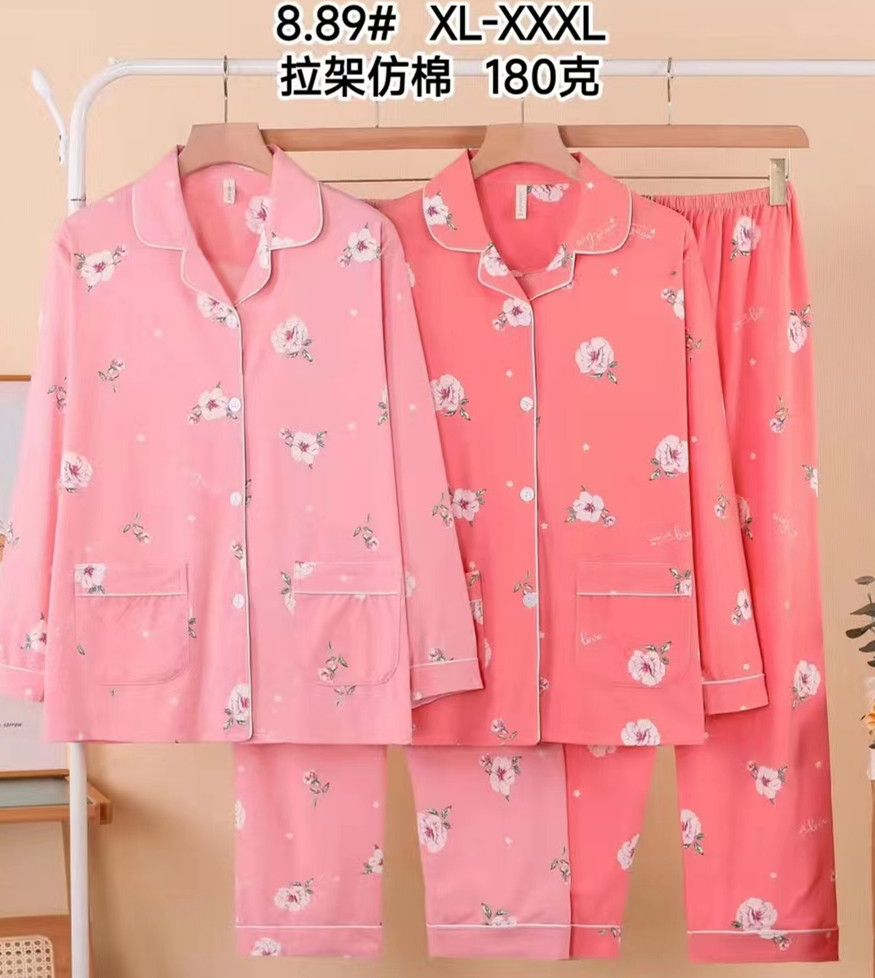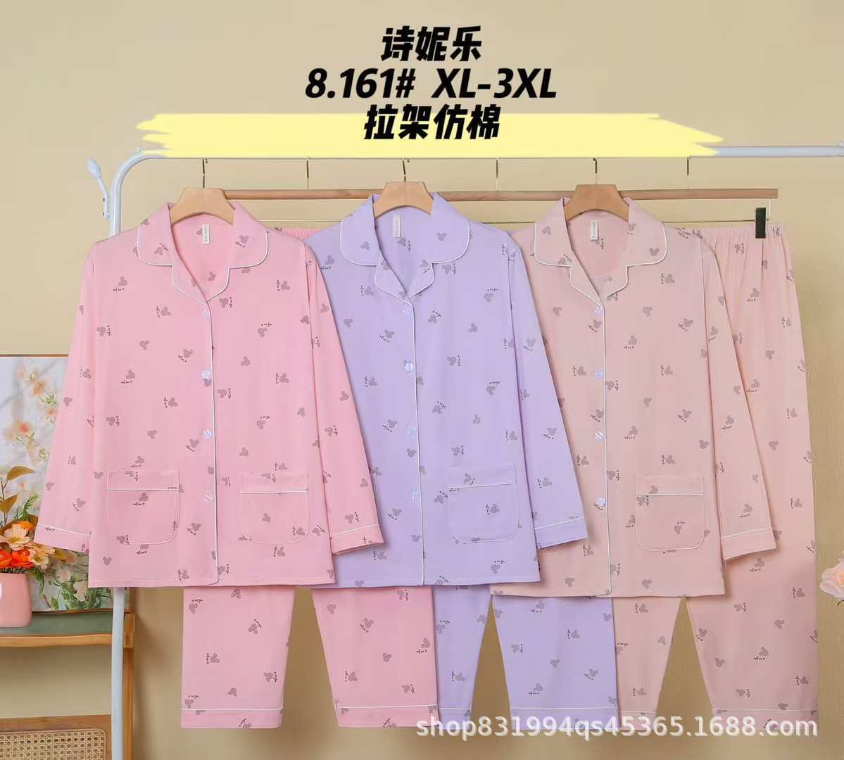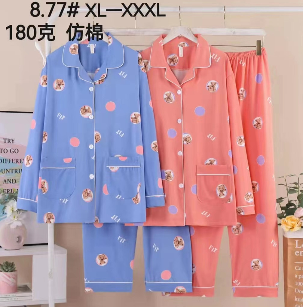 Longge Castle 잠옷 여자의 긴팔 봄과 가을 카디건 플러스 사이즈 느슨한 플러스 뚱뚱한 얇은 가정 의류 징글 제국 첩 모조 면