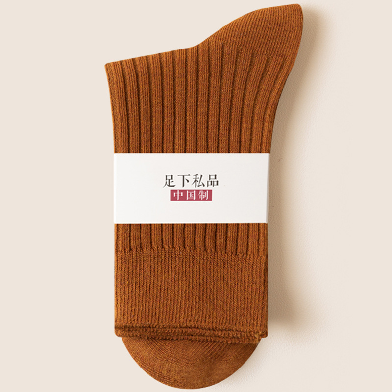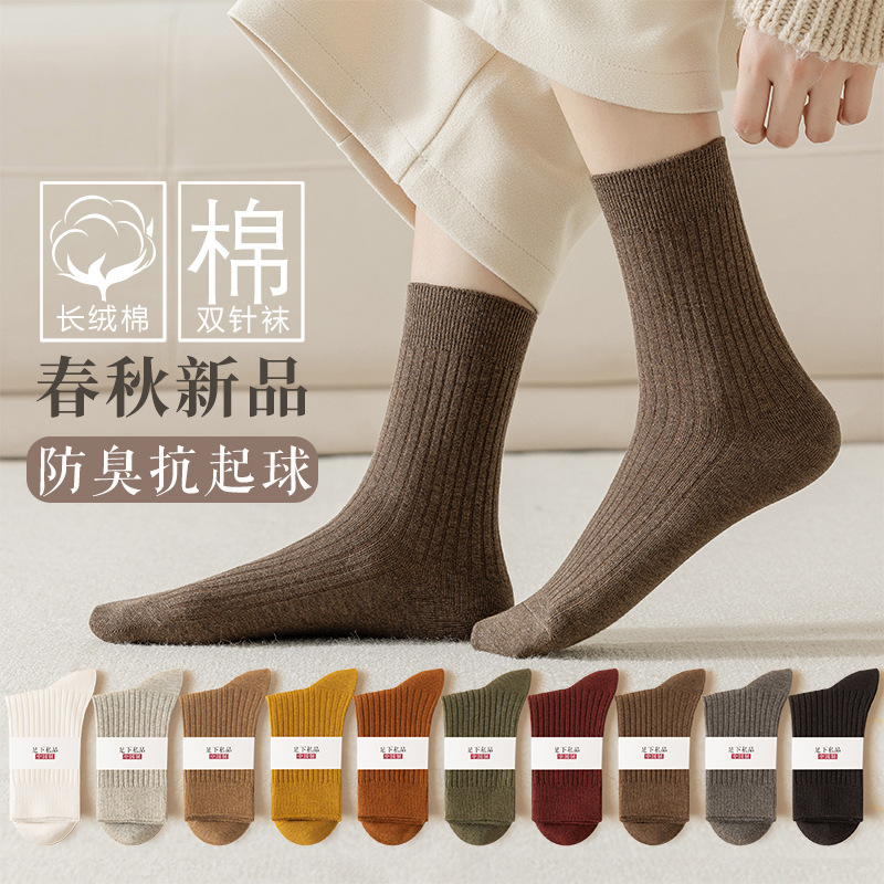 양말 여성용 종아리 중간 양말 가을, 겨울 면 이중 바늘 탈취제 땀 흡수 스포츠 여성용 뼈없는 면 양말 긴 양말 도매