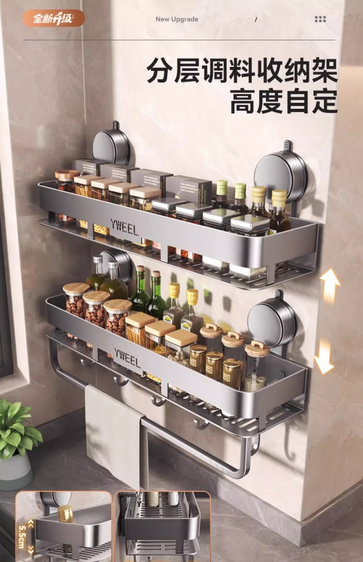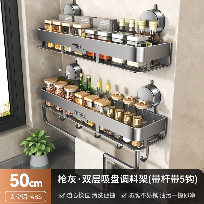 • 건애쉬·흡착컵 더블 레이어 스파이스 랙 50cm+막대 포함 후크 5개