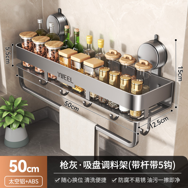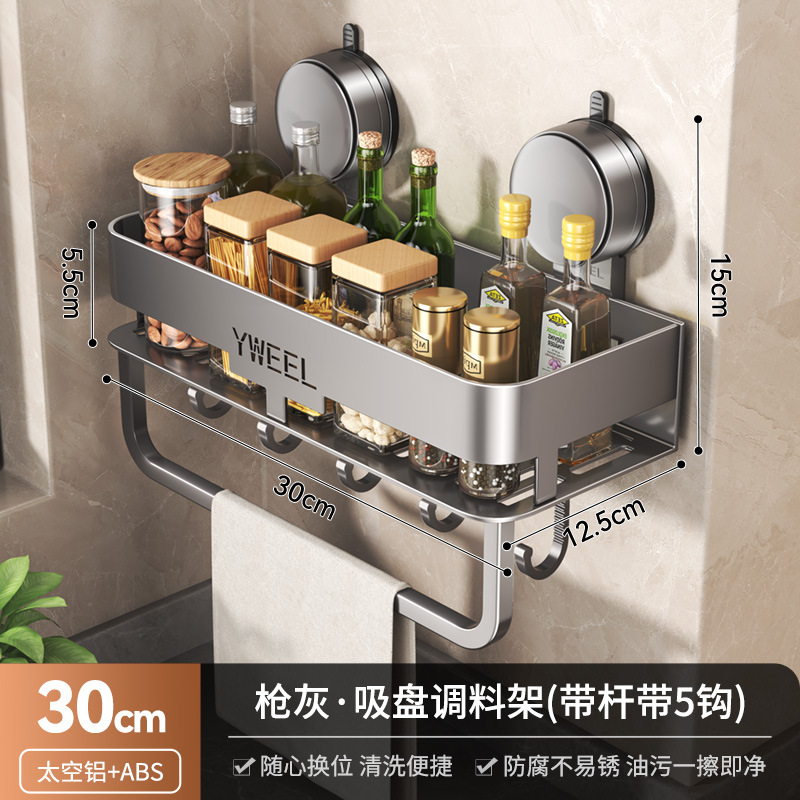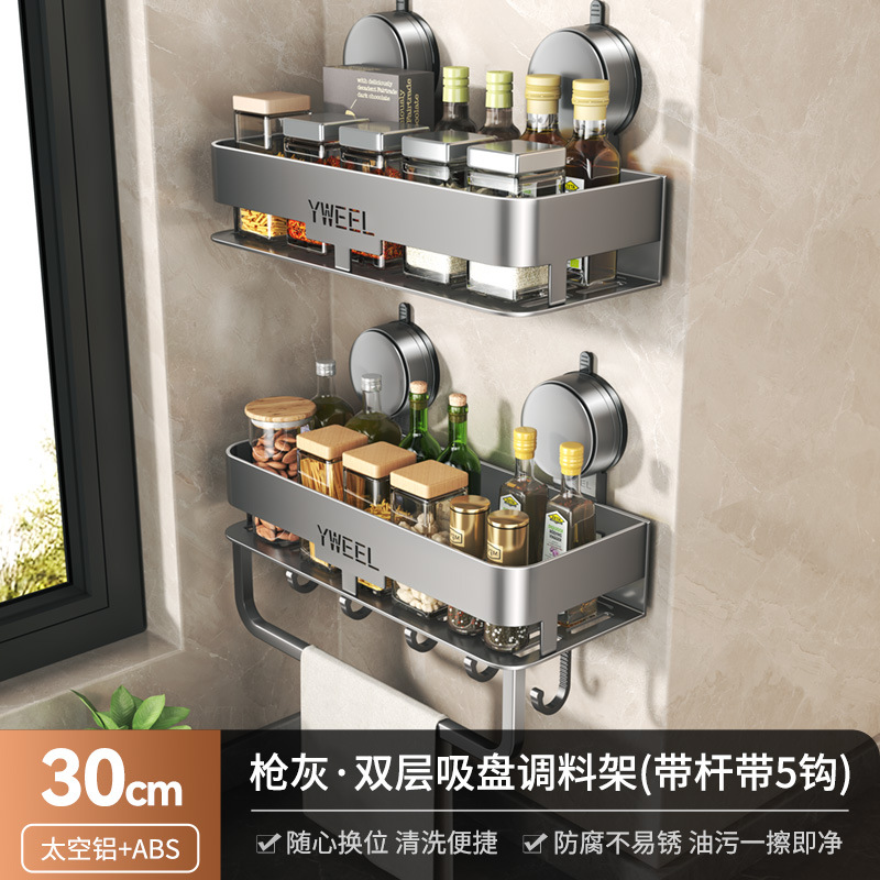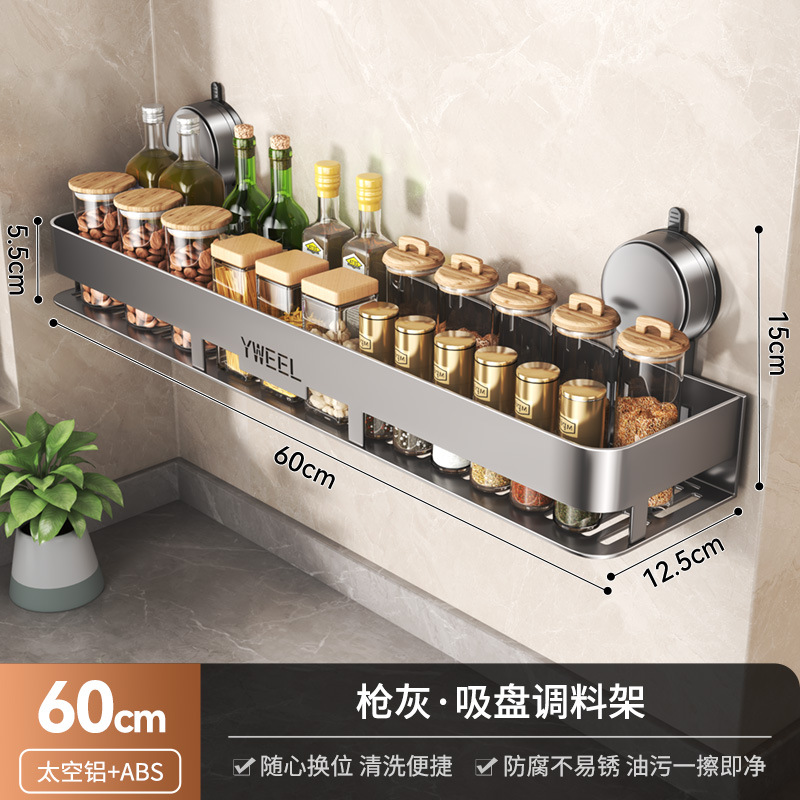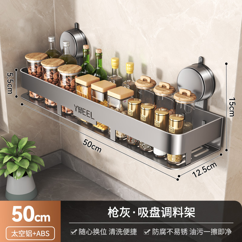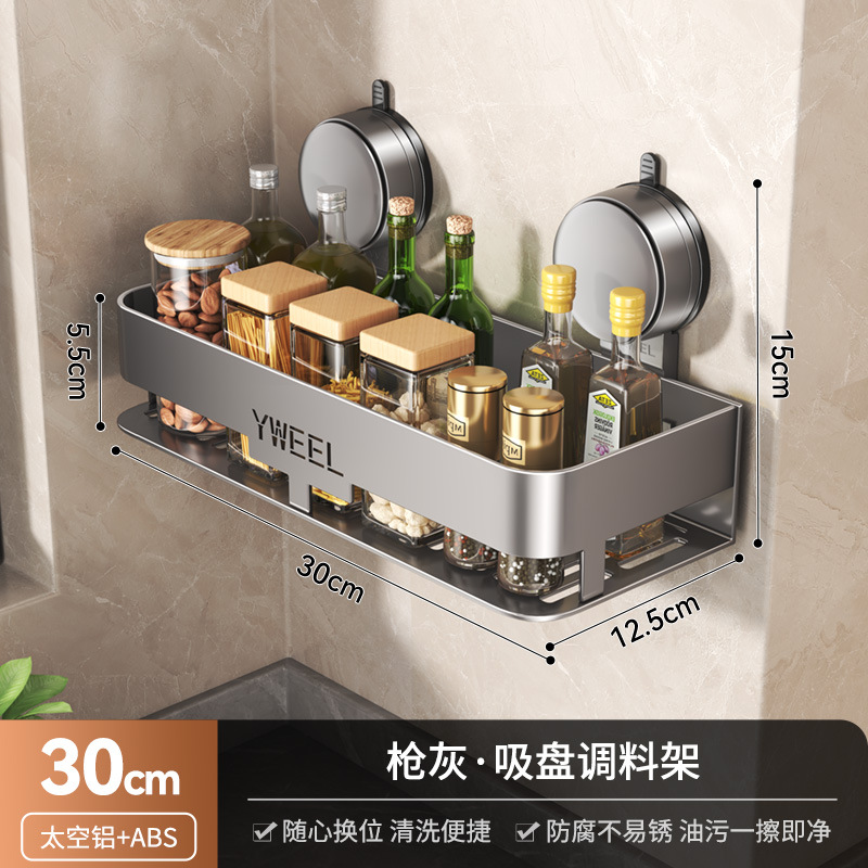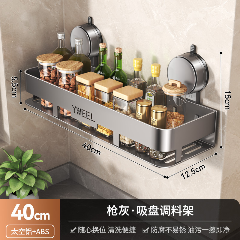 벽걸이 무타공 주방 흡착식 수납선반 스페이스 알루미늄 조미료 용품 정리대 주방 수납선반