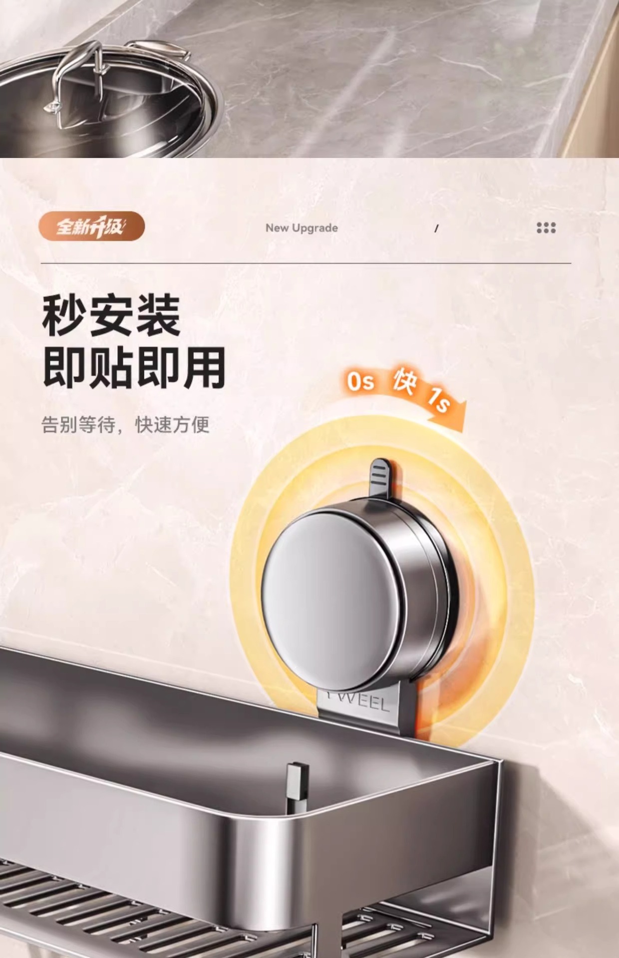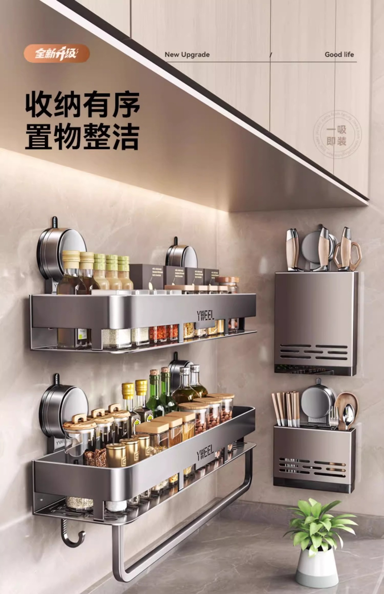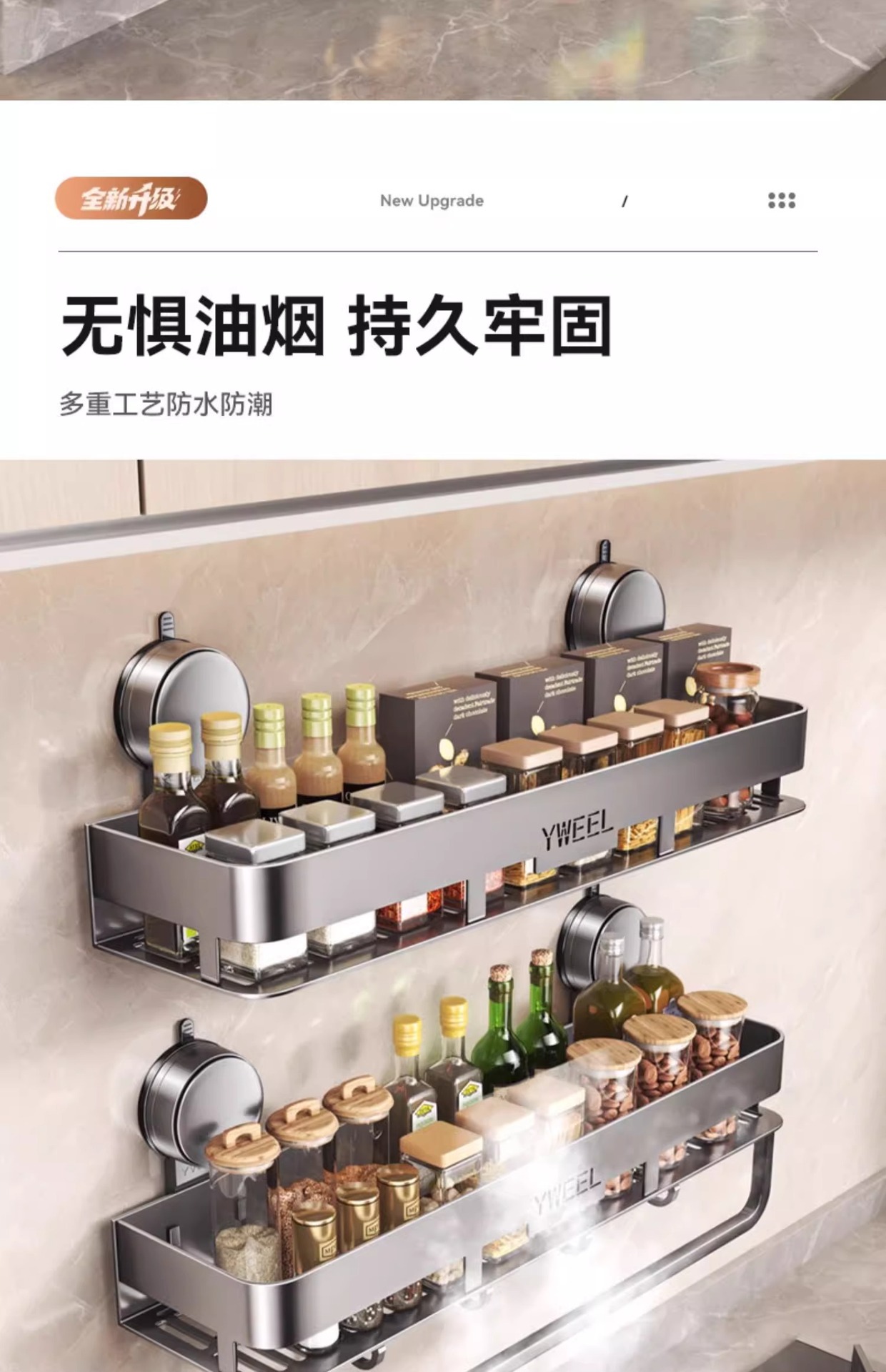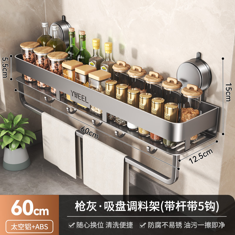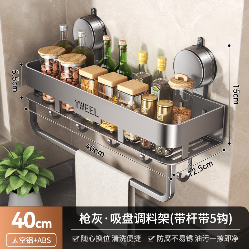 벽걸이 무타공 주방 흡착식 수납선반 스페이스 알루미늄 조미료 용품 정리대 주방 수납선반