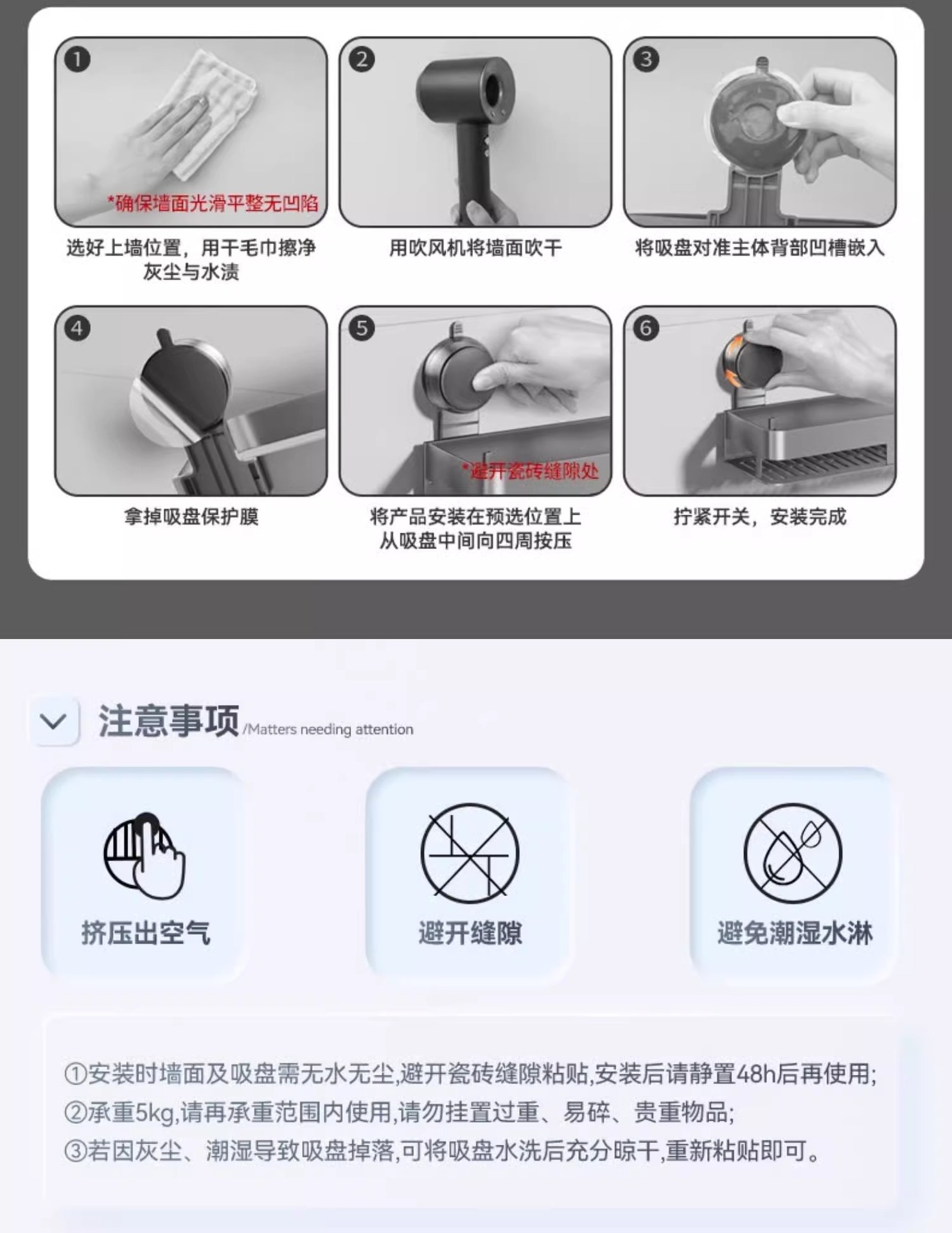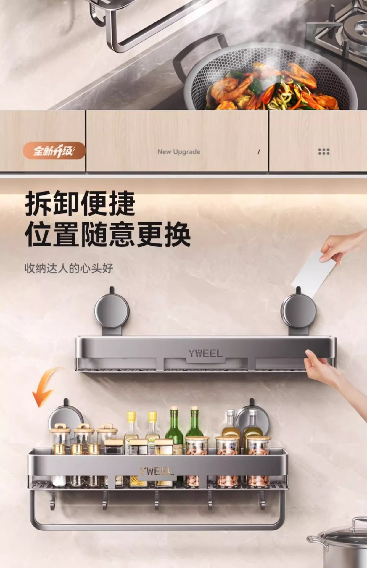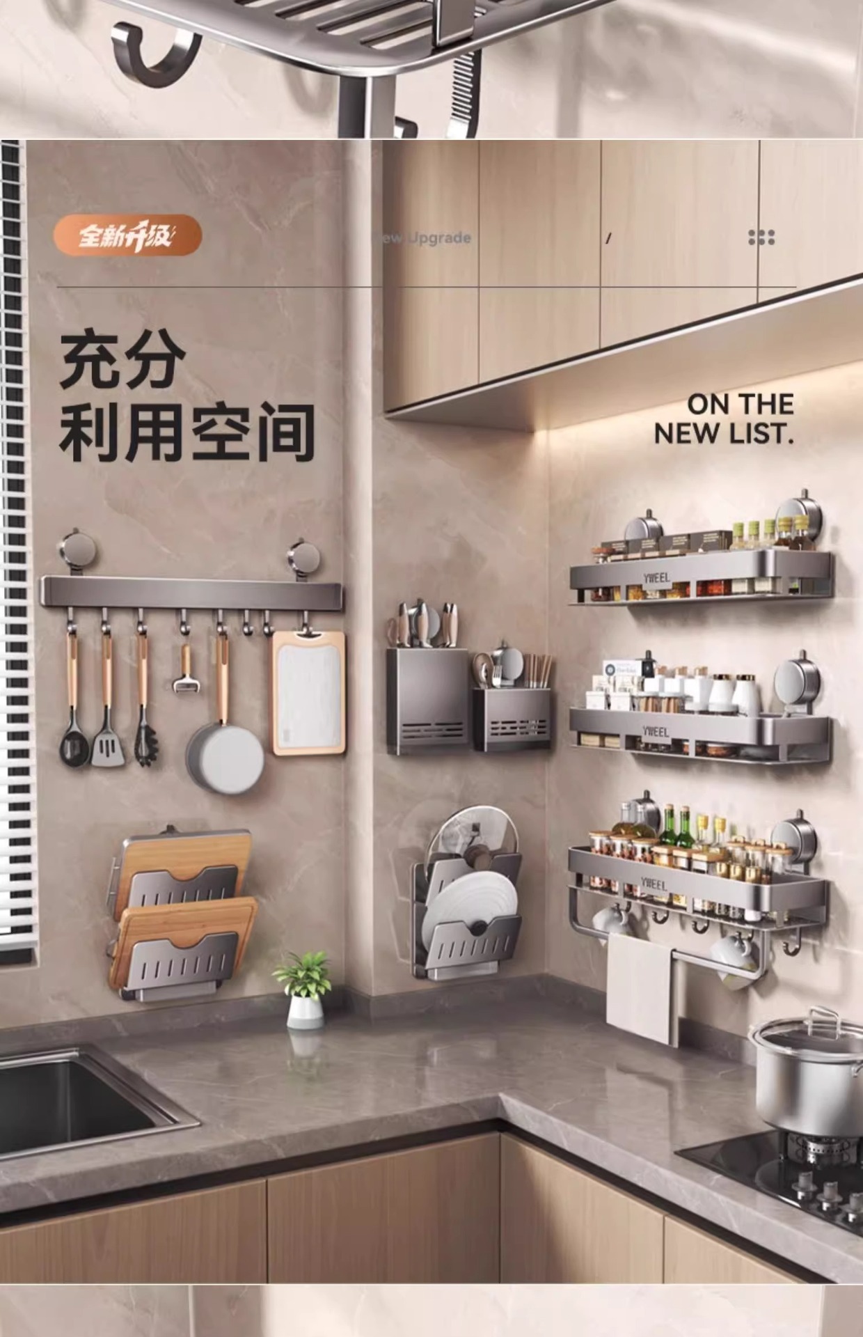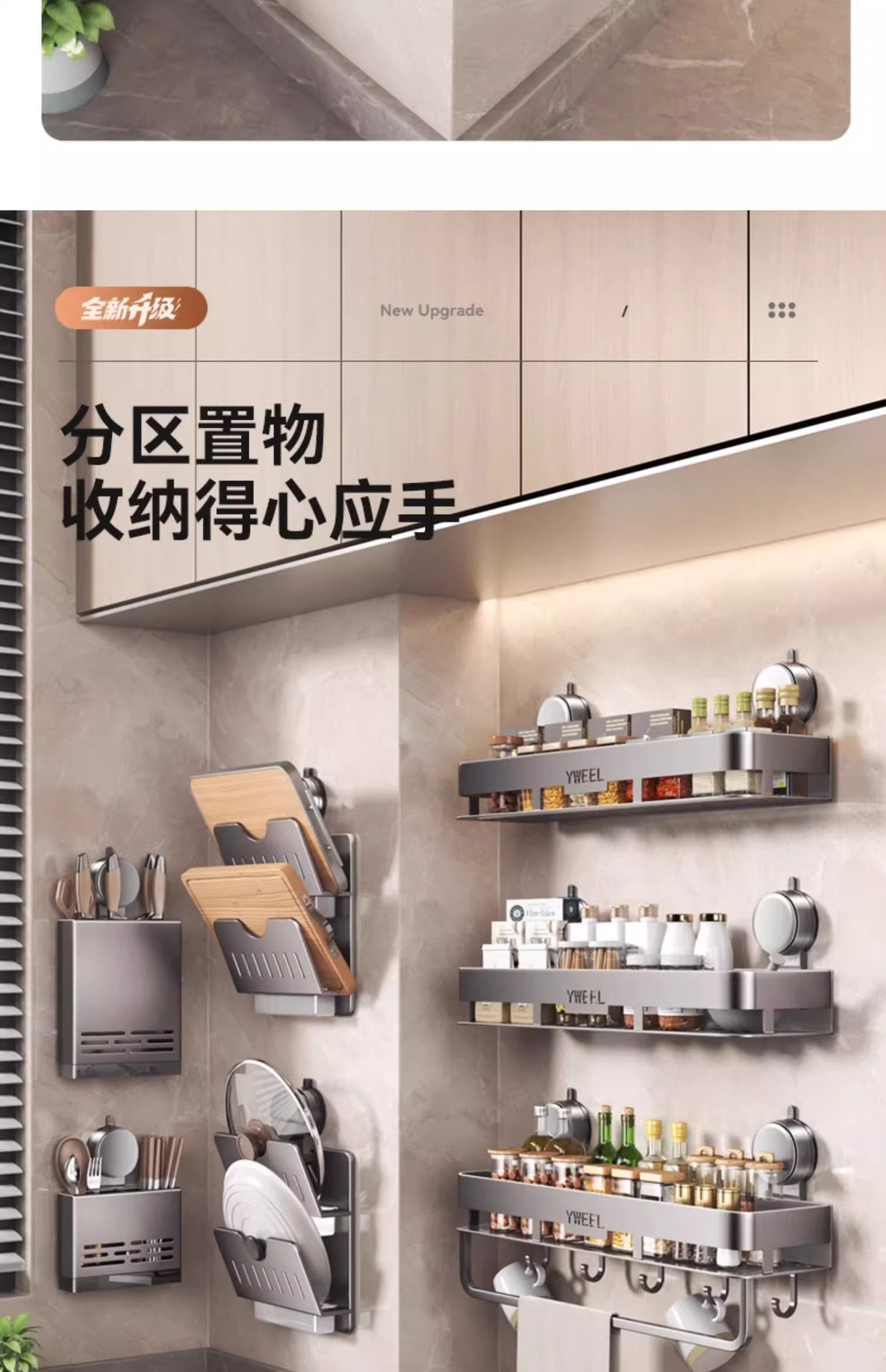 벽걸이 무타공 주방 흡착식 수납선반 스페이스 알루미늄 조미료 용품 정리대 주방 수납선반
