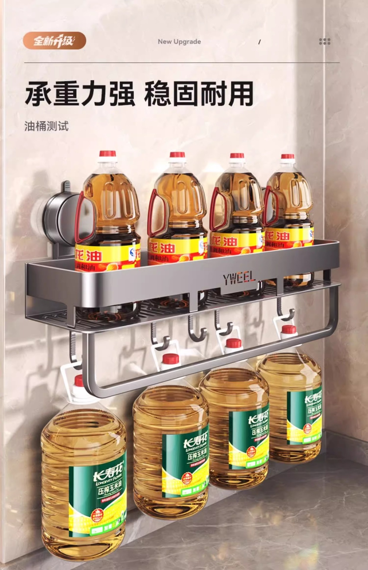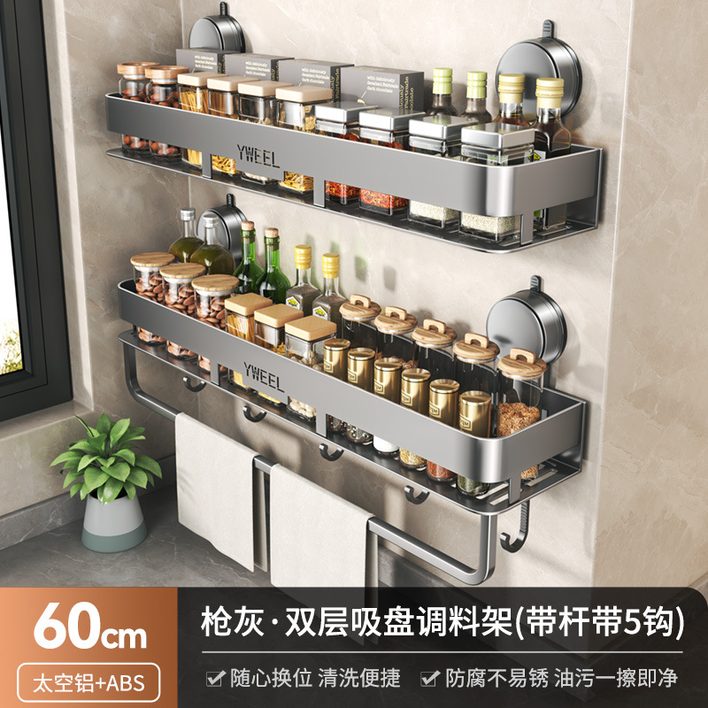 • 건애쉬·흡착컵 더블 레이어 스파이스 랙 60cm+막대 포함 후크 5개