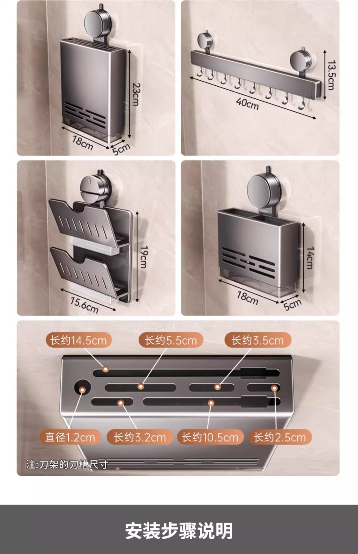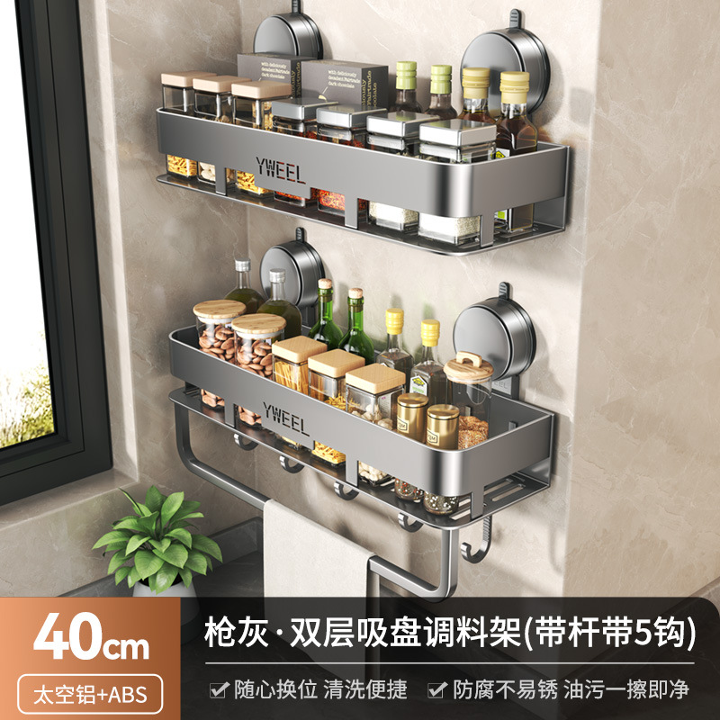 • 건애쉬·흡착컵 더블 레이어 스파이스 랙 40cm+막대 포함 후크 5개