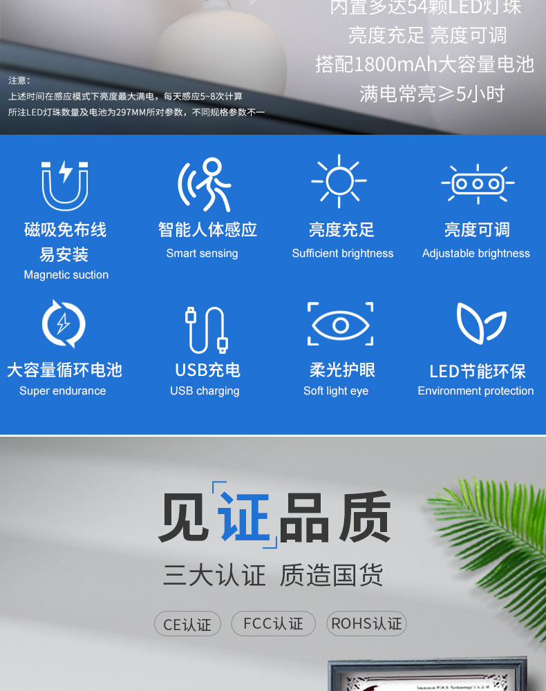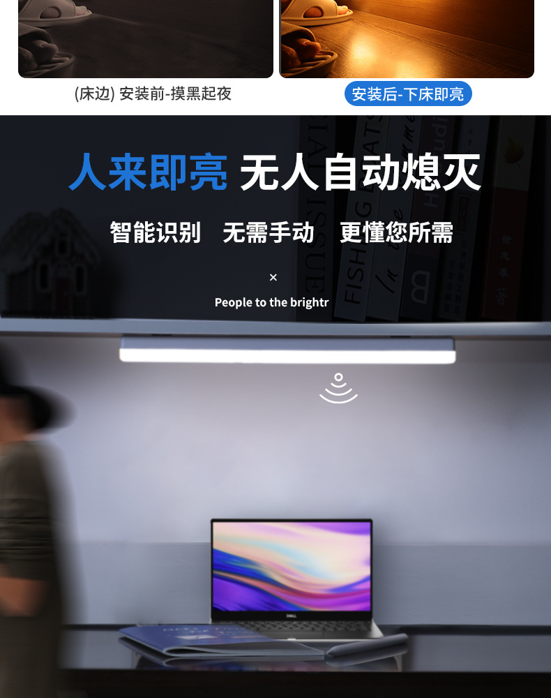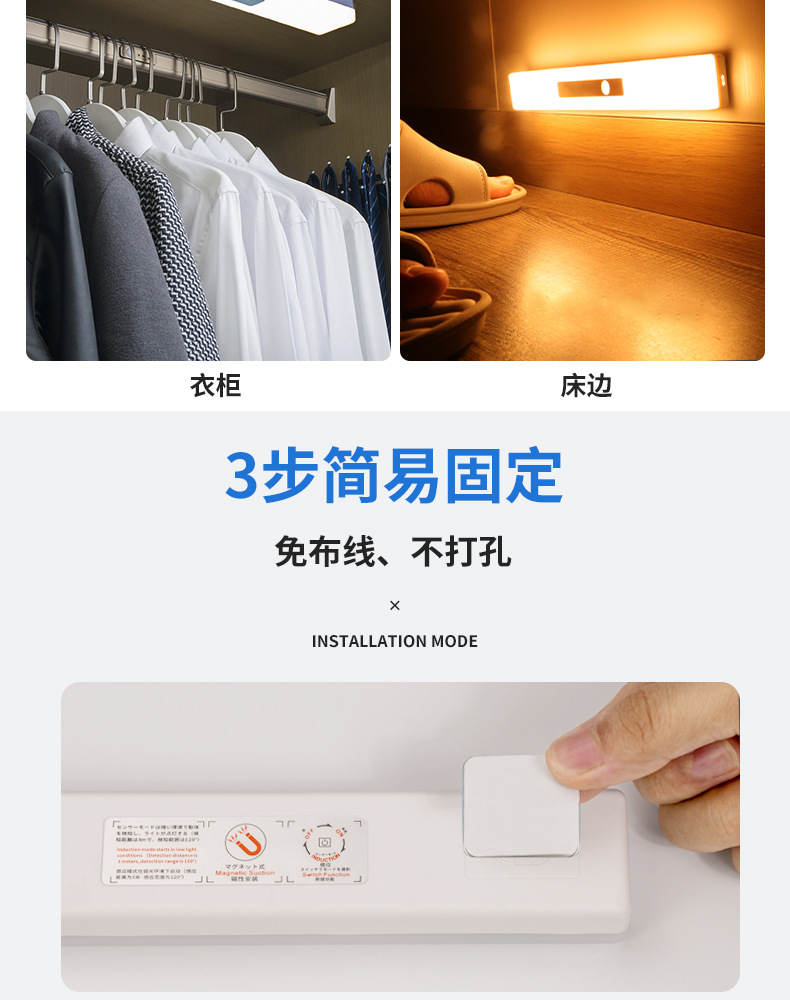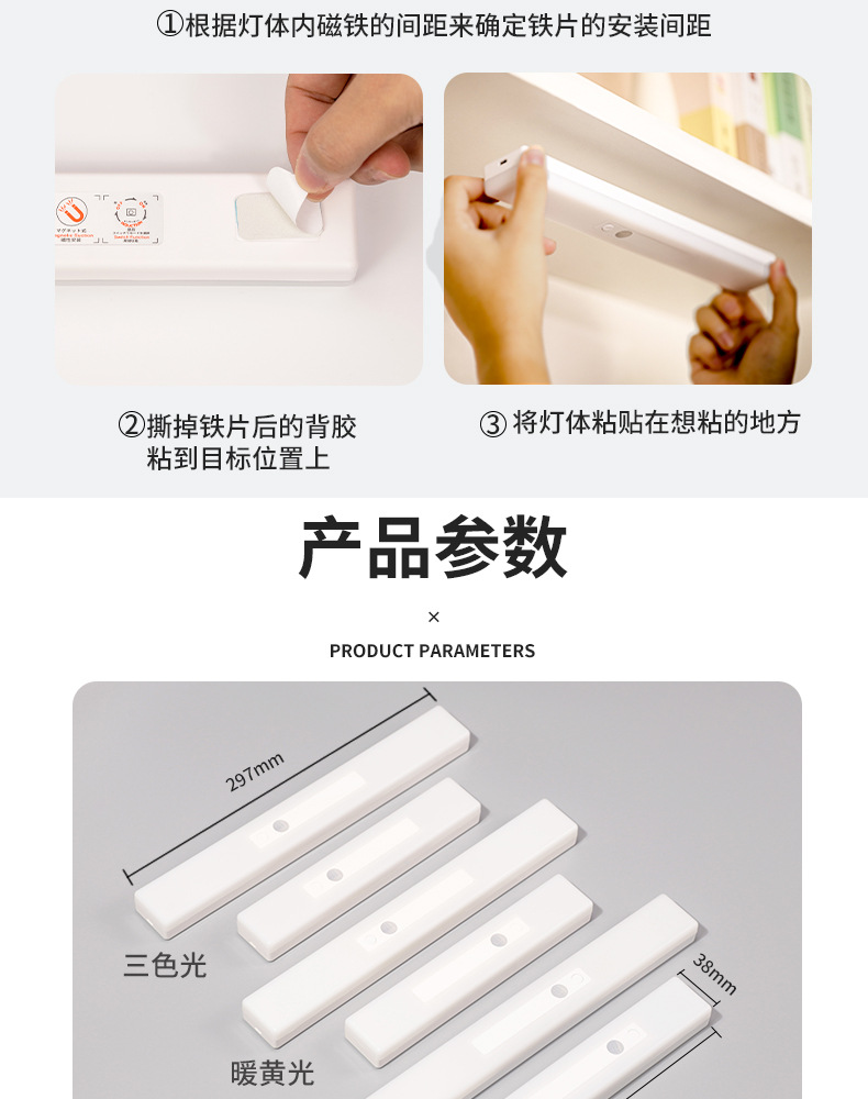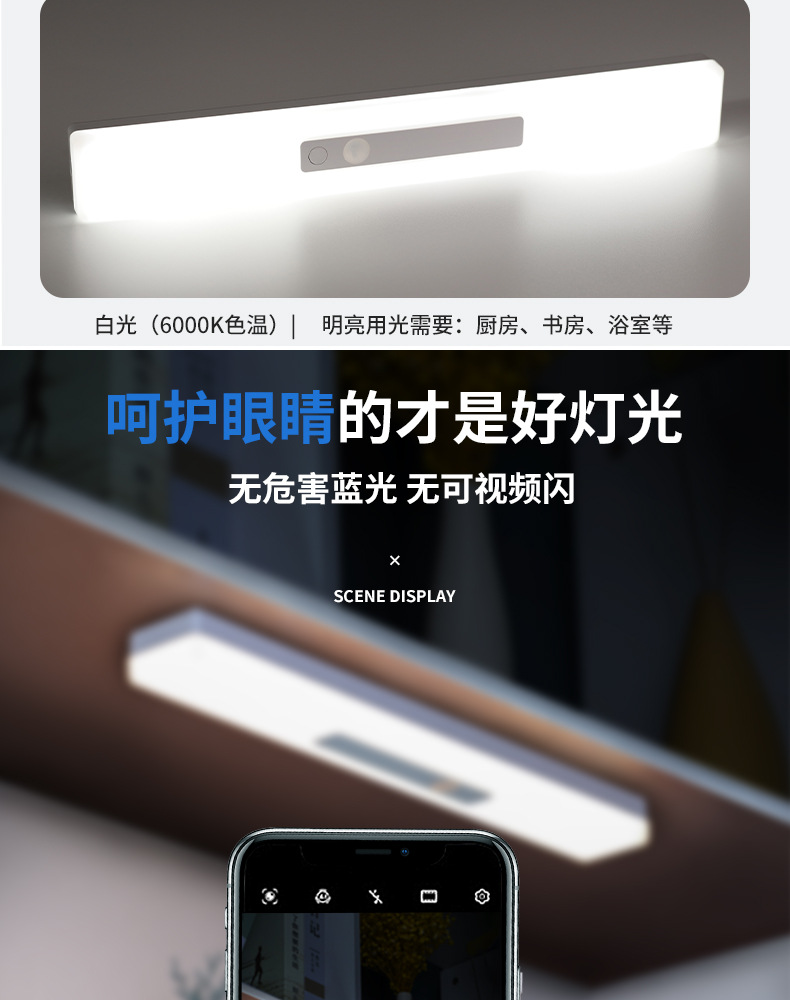 Led 3 색 지능형 인체 유도 램프 모던 심플 울트라 광각 유도 바 무선 마그네틱 와인 캐비닛 바 램프
