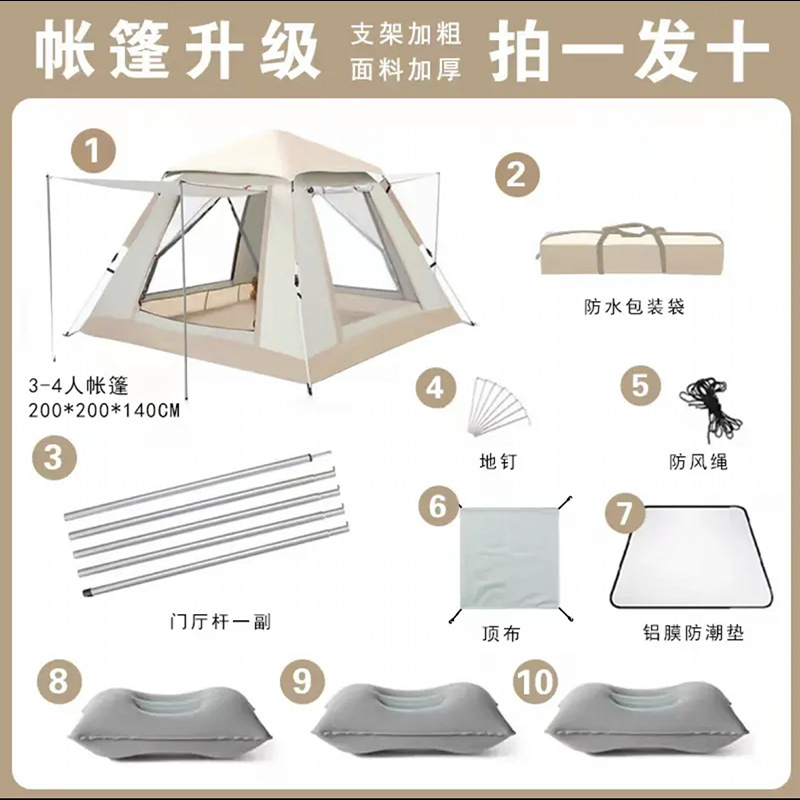 크로스보더 다인용 이중텐트 도매 캐노피 비치 캠핑 장비 휴대용 방수 모기 방지 캠핑 텐트 야외스토어 가기