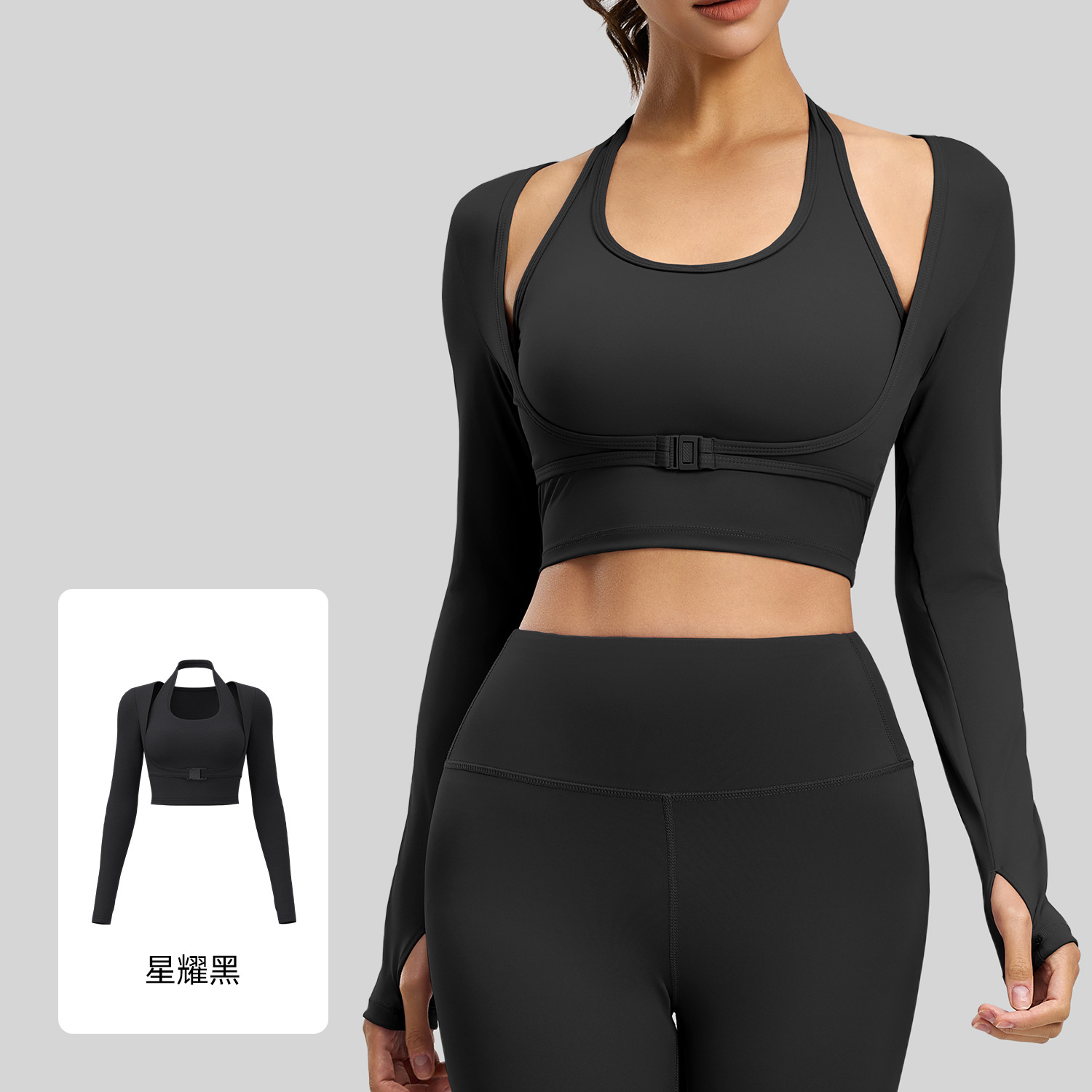 Juyitang 가짜 2 피스 넥 탑-가슴 패드 스포츠 세트 통기성 필라테스 요가 피트니스 세트