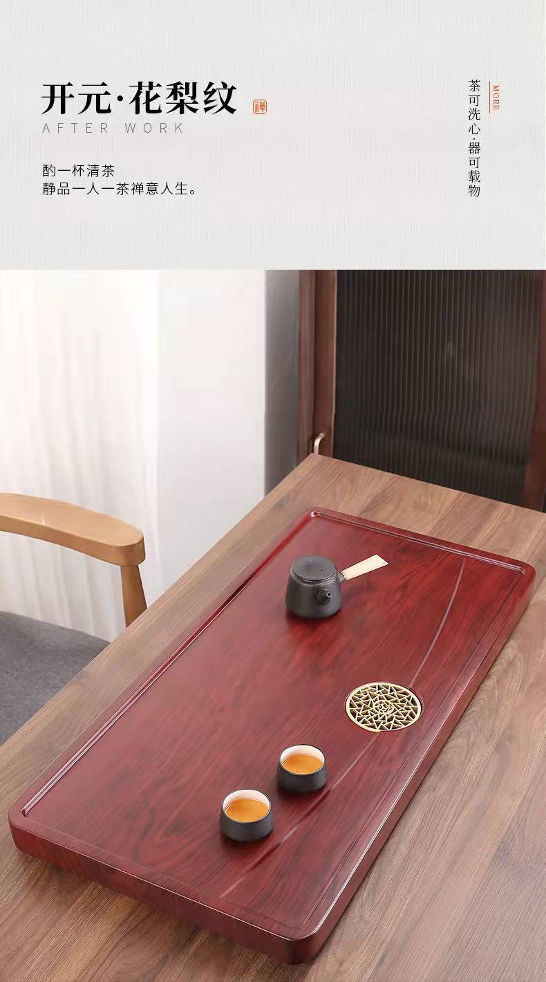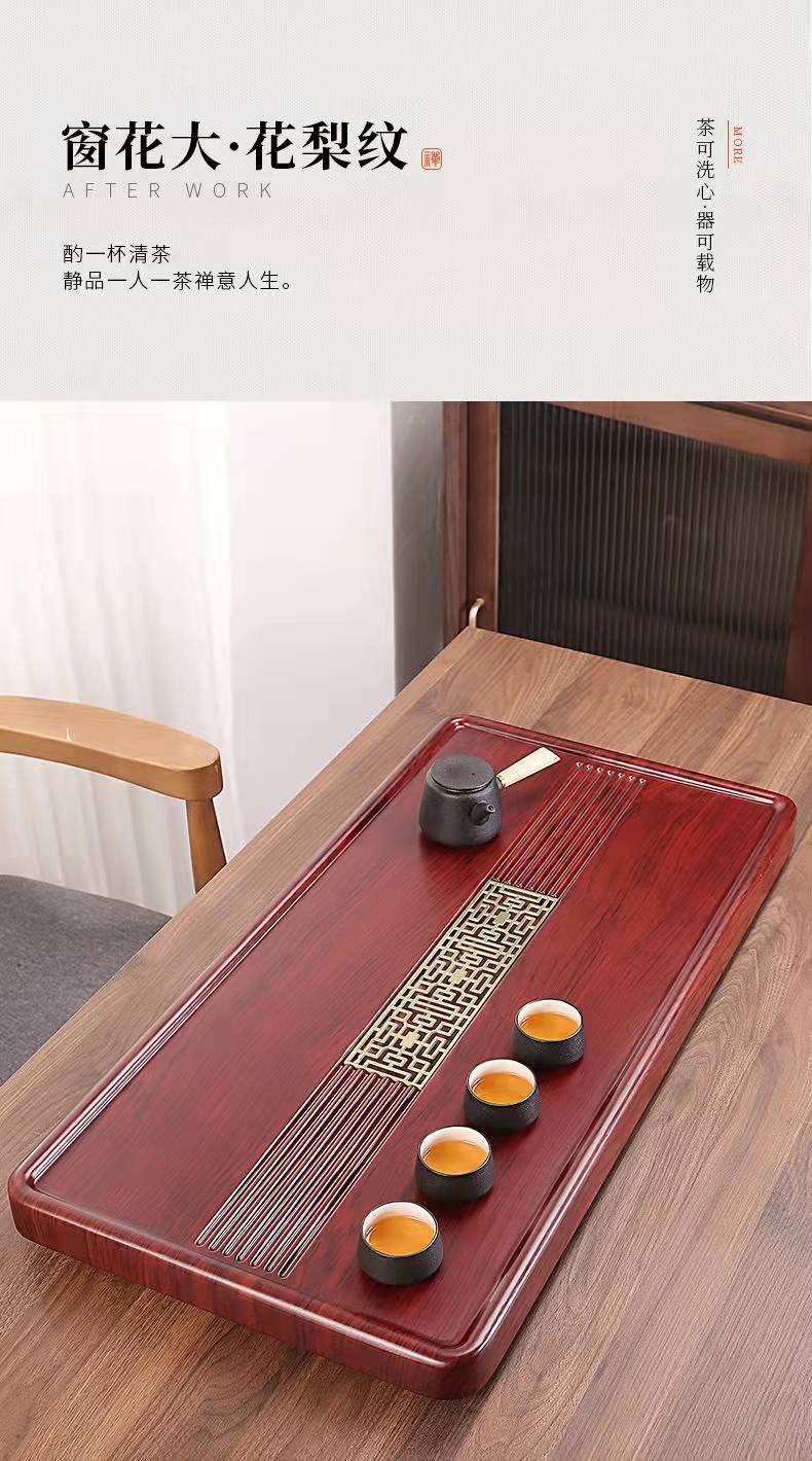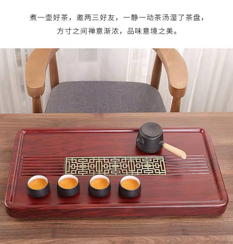 Huali 차 테이블 대형 스몰 사이즈 직사각형 단단한 나무 차 쟁반 가정 전체 차 바다 흑단 로그 차 접시 레드 우드 쟁반스토어 가기