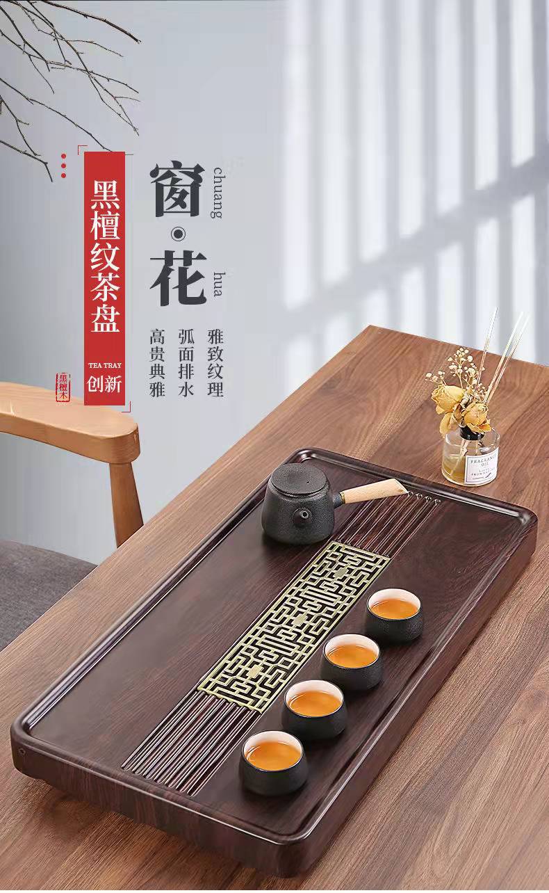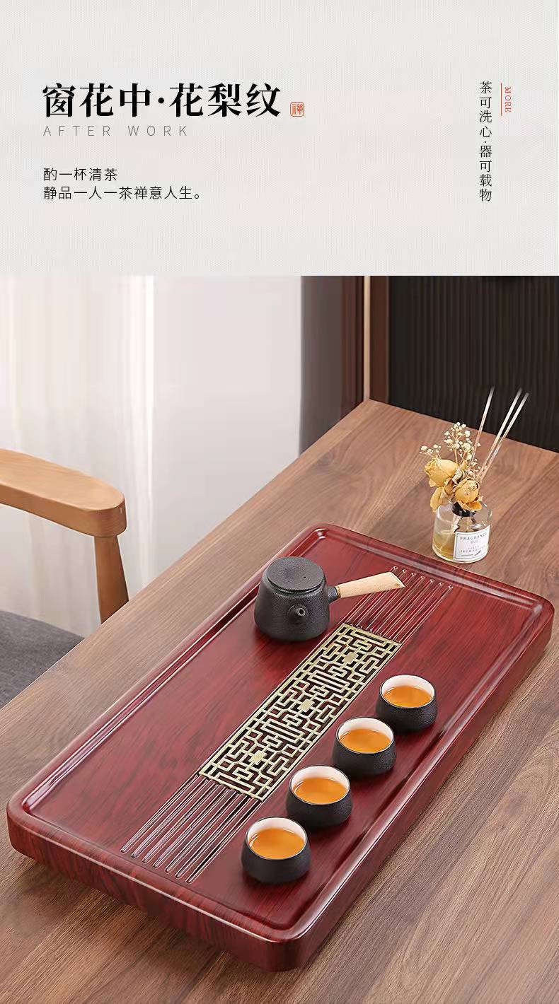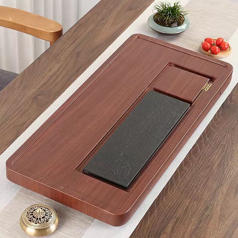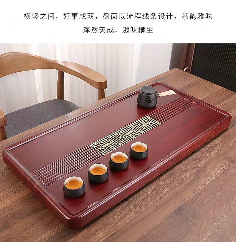 Huali 차 테이블 대형 스몰 사이즈 직사각형 단단한 나무 차 쟁반 가정 전체 차 바다 흑단 로그 차 접시 레드 우드 쟁반