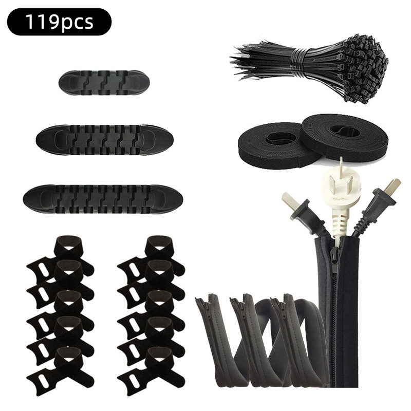 119pcs 블랙 하모니 실리콘 와이어 주최자 패키지 다공성 조합 데스크탑 권선 케이블 저장스토어 가기