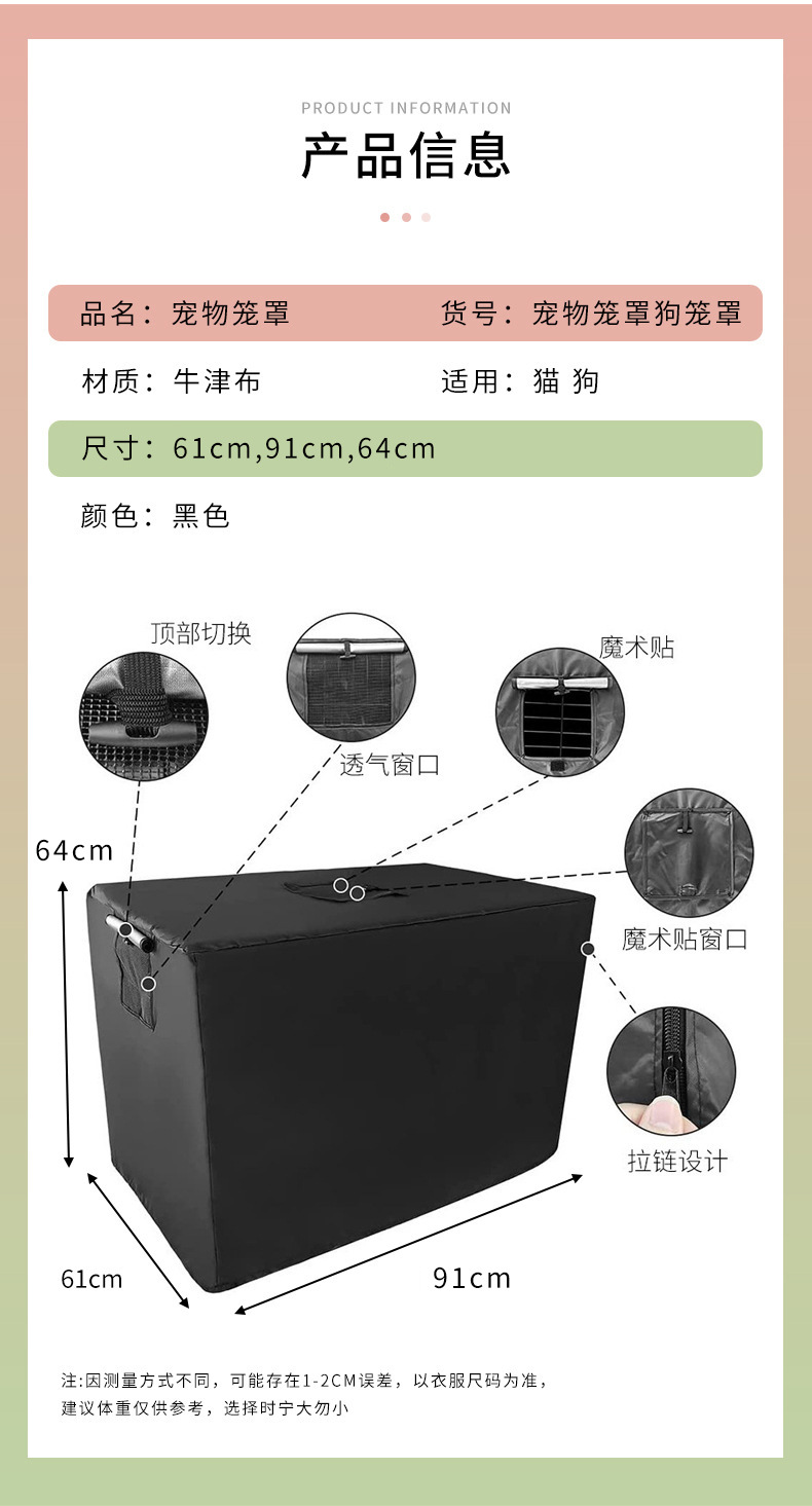 국경을 넘는 애완동물 케이지 옥스포드 천 방수 개 케이지 보호 커버 두꺼운 보온 커버 여름 모기 및 곤충 방지 커버스토어 가기