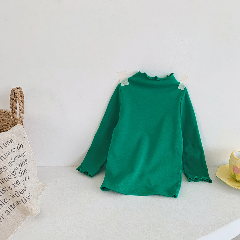 2025 가을 여아 스타일 티셔츠, 중대형 아동용 한국식 긴팔 터틀넥 바닥 셔츠, 여아 이너 상의