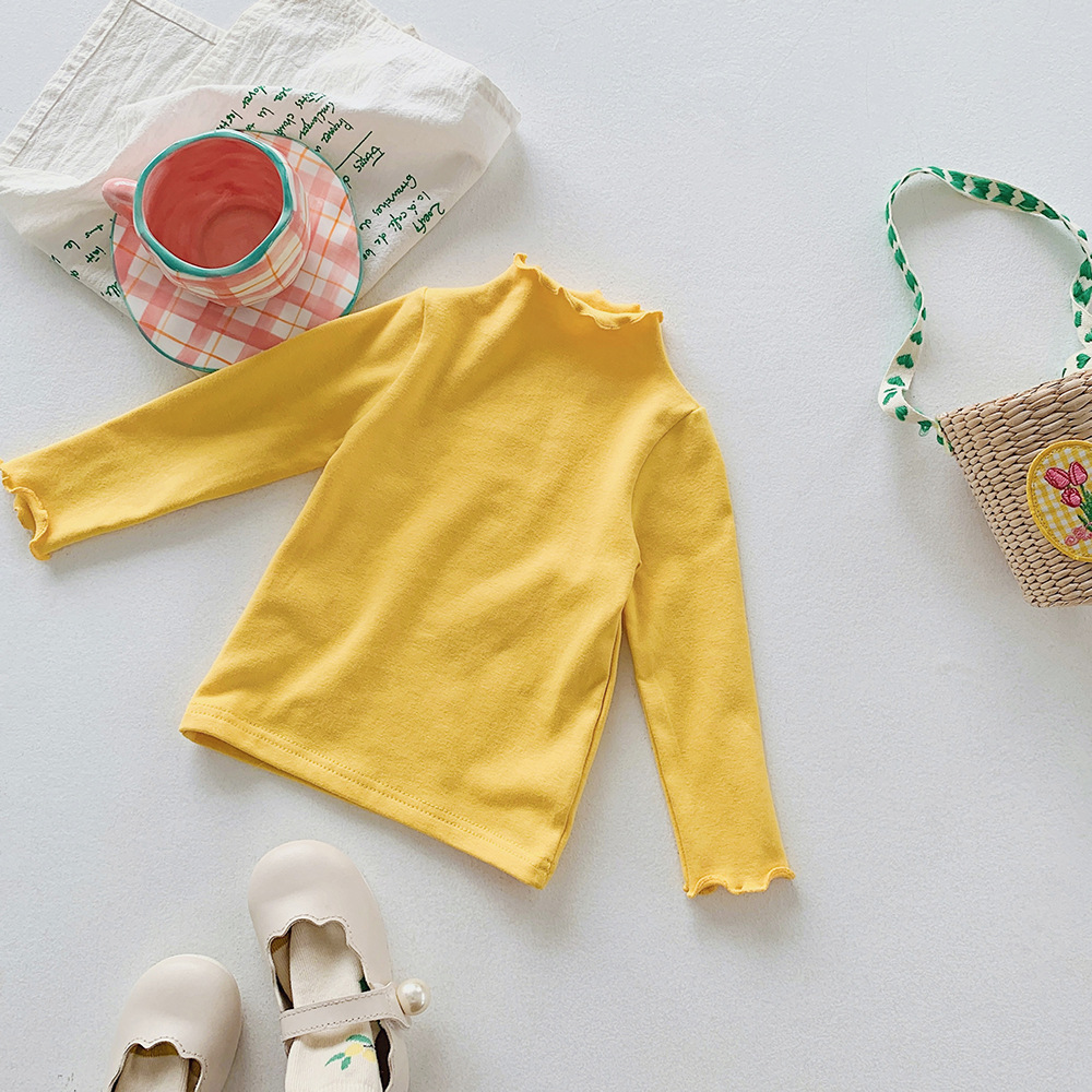 2025 가을 여아 스타일 티셔츠, 중대형 아동용 한국식 긴팔 터틀넥 바닥 셔츠, 여아 이너 상의스토어 가기
