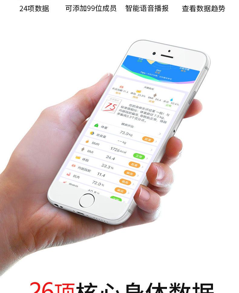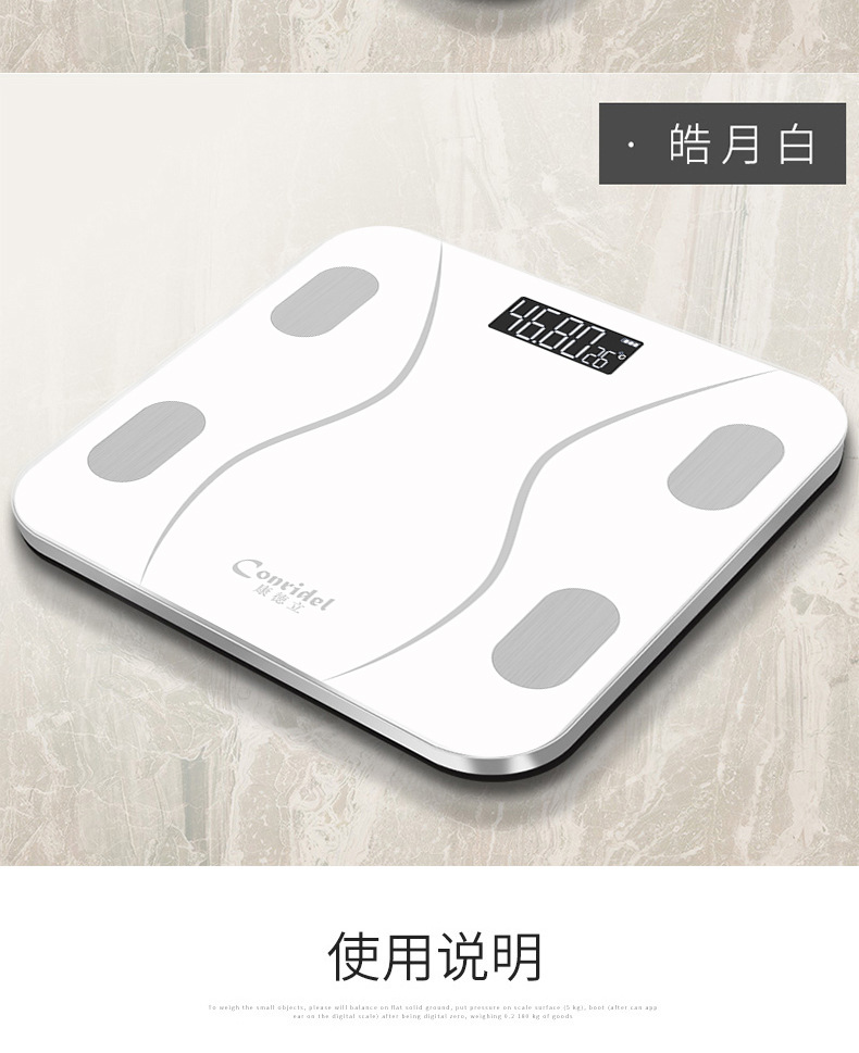 • 낚싯줄 화이트 - 블루투스 체지방계 [OKOK-APP] -- 실크스크린 전극 패드 [중국어]