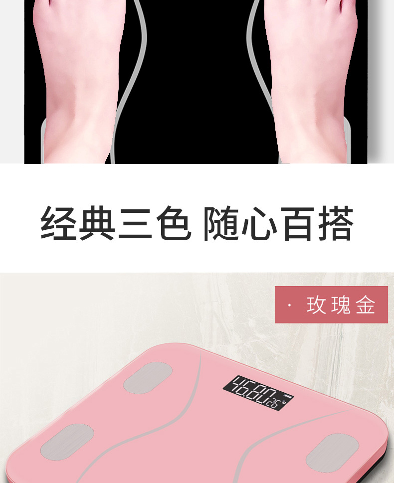 • 로즈 핑크 - 블루투스 체지방계 CS952 [OKOK-APP] -- 실크스크린 전극 패드 [중국어]
