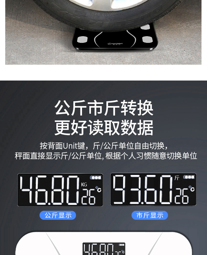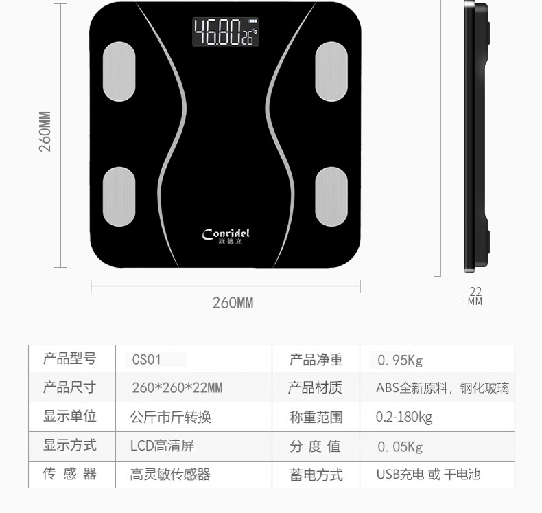 • 크레센트 블랙-블루투스 체지방 측정기 CS952 [OKOK-APP]--실크 스크린 전극 시트 [중국어]