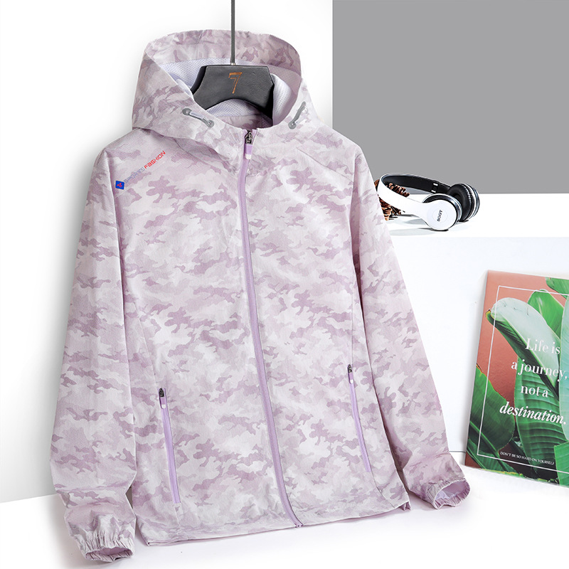 야외 봄과 가을 여성의 위장 후드 러쉬 의류 스포츠 재킷 싱글 의류 여성의 얇은 윈드 브레이커 재킷 인쇄 가능한 LOGO스토어 가기