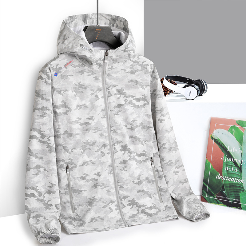 야외 봄과 가을 여성의 위장 후드 러쉬 의류 스포츠 재킷 싱글 의류 여성의 얇은 윈드 브레이커 재킷 인쇄 가능한 LOGO