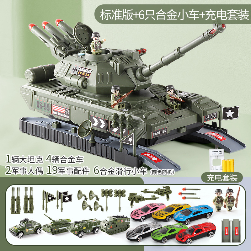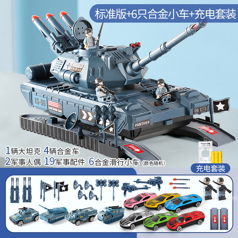 어린이 탱크 장난감 자동차 소년 조기 교육 음악 변형 트랙 합금 관성 자동차 군사 탱크 3 모델 6 세