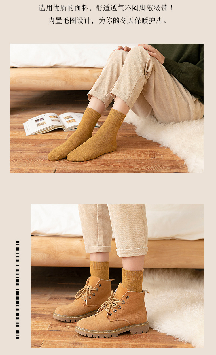 여성용 겨울 양말, 기모 처리된 두꺼운 중목 양말, 단색 일본식 보온 타월 양말, 검정색 롱 양말, 트렌디한 테리 양말, 남성용스토어 가기