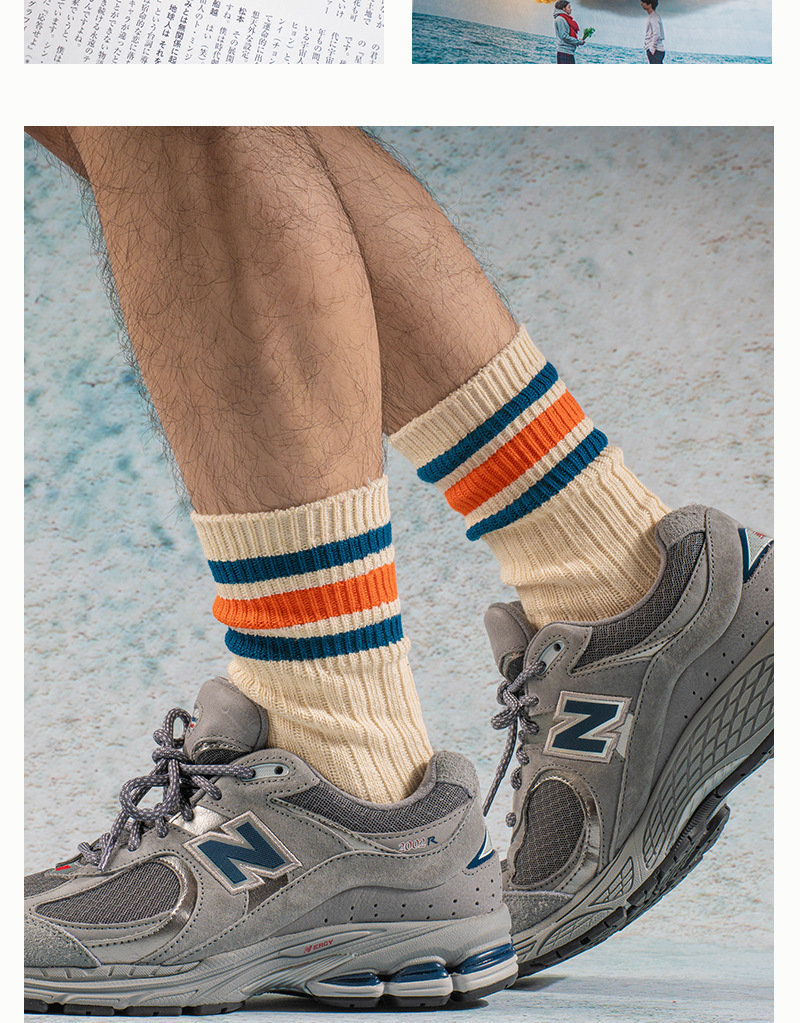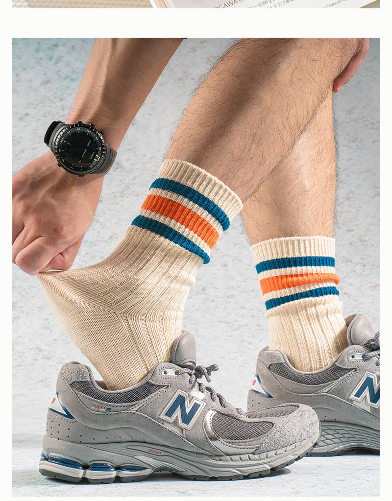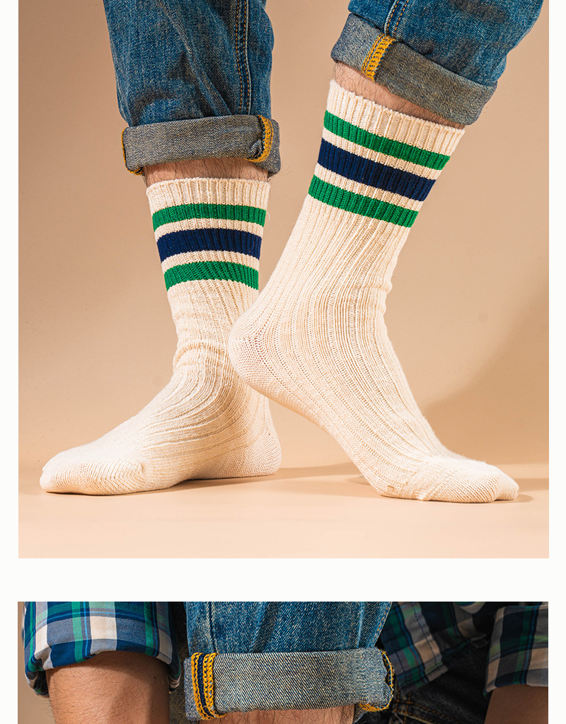 2024 가을과 겨울 새 양말 남성용 뼈없는 코튼 중공업 두꺼운 단색 드로스트립 일본식 3 바 빈티지 스타킹스토어 가기