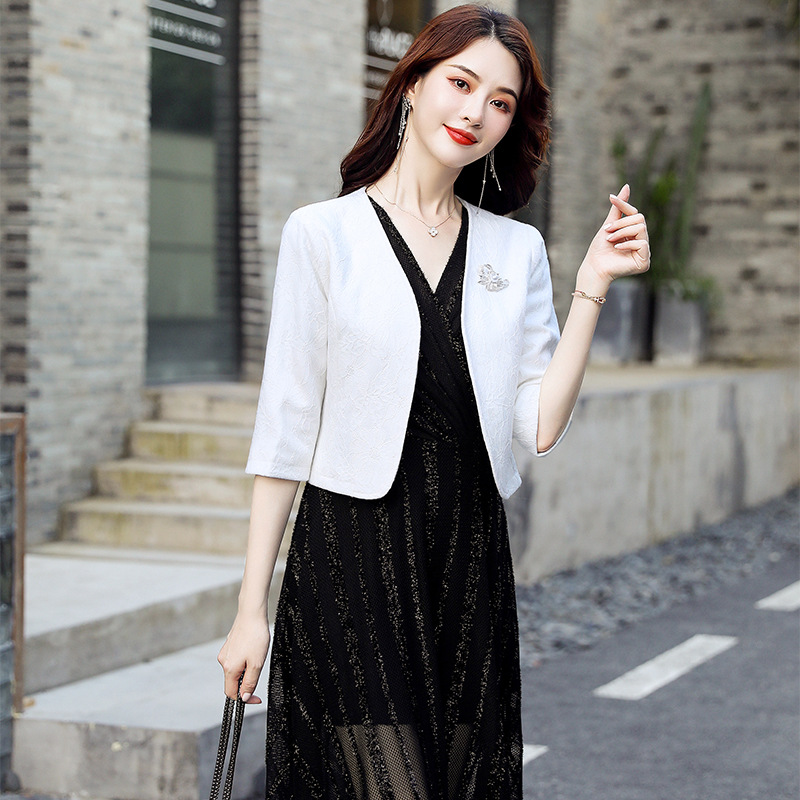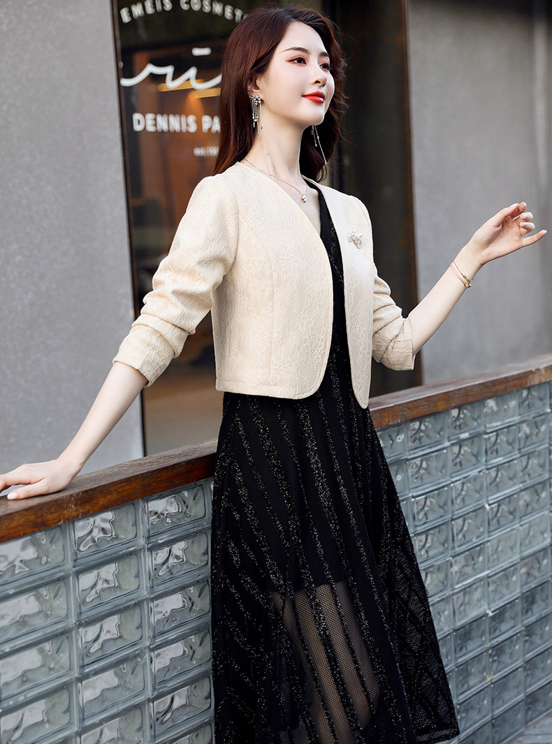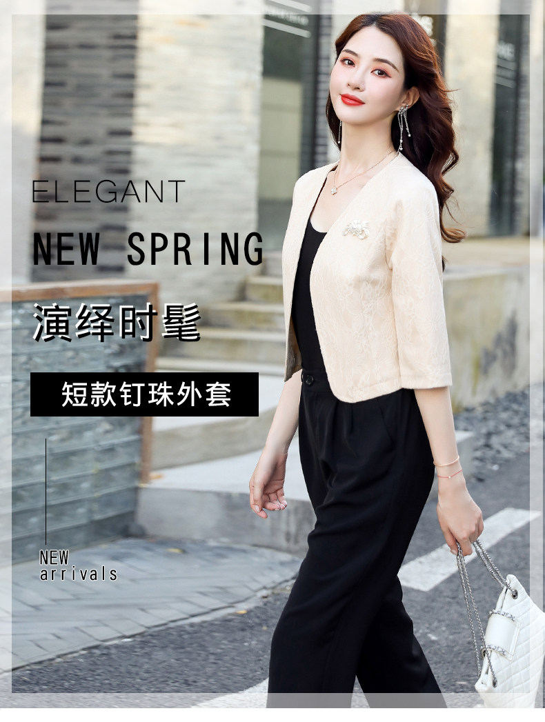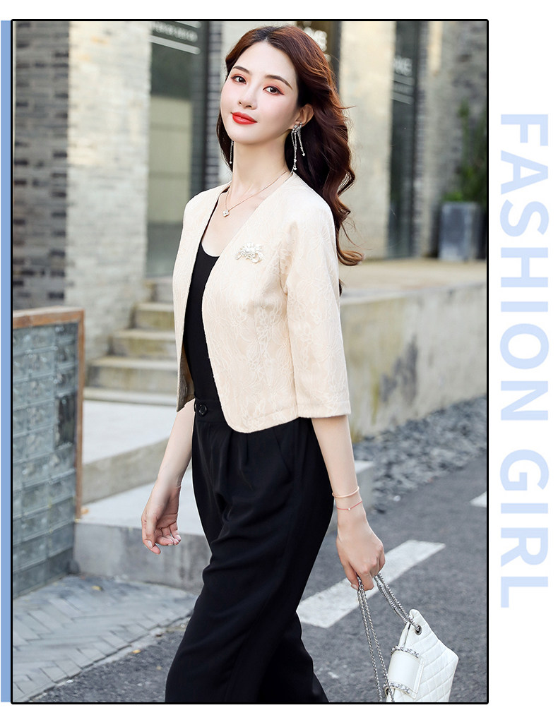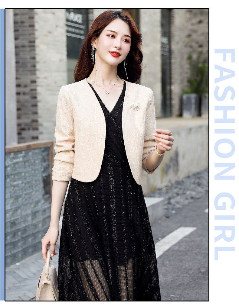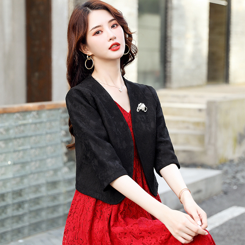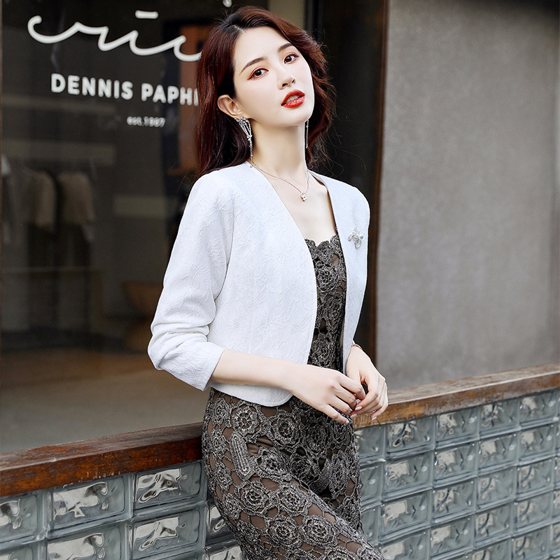레이스 작은 숄 짧은 코트 여자의 가을 2023 새로운 모든 매치 세트 조끼 치파오 스커트 아우터 가디건스토어 가기