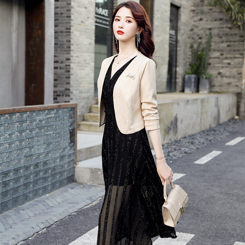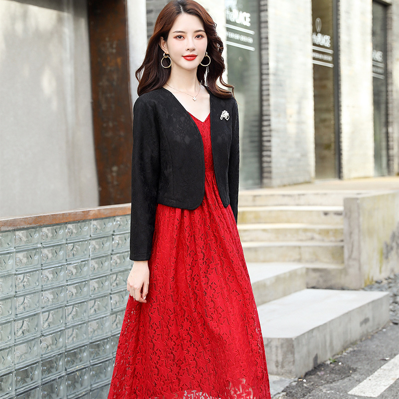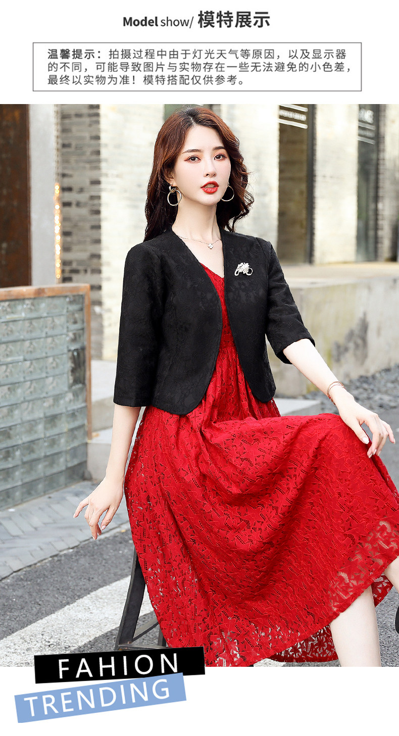레이스 작은 숄 짧은 코트 여자의 가을 2023 새로운 모든 매치 세트 조끼 치파오 스커트 아우터 가디건