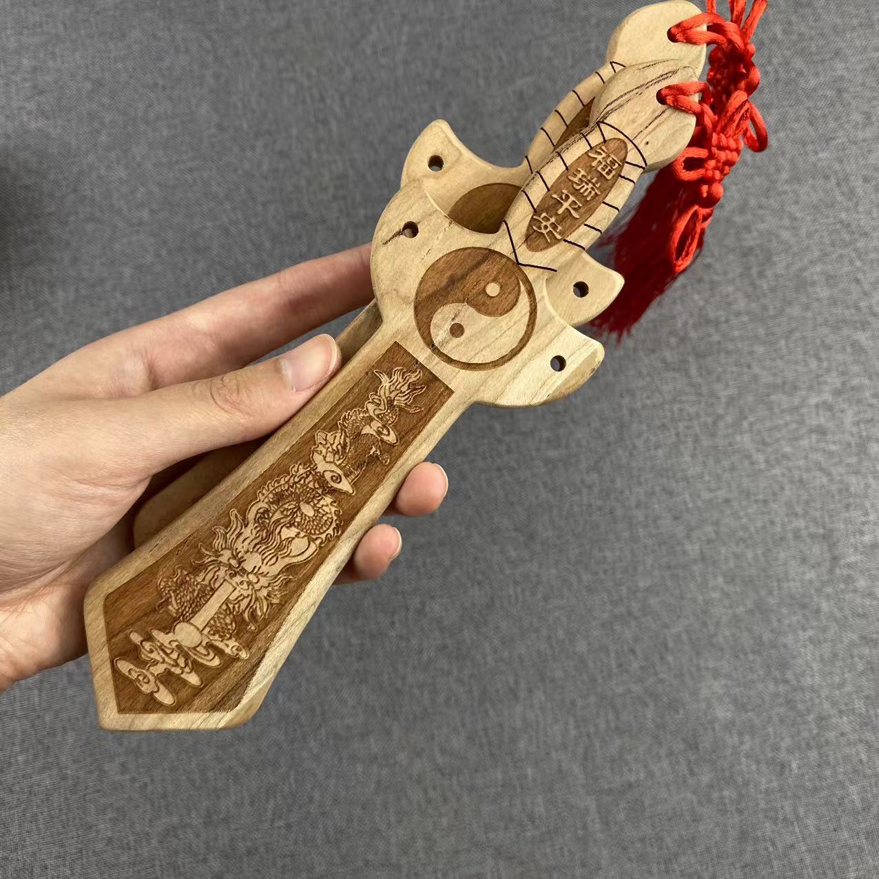 복숭아 나무 평평한 검 평면 도끼 나무 거실 홈 펜던트 장식