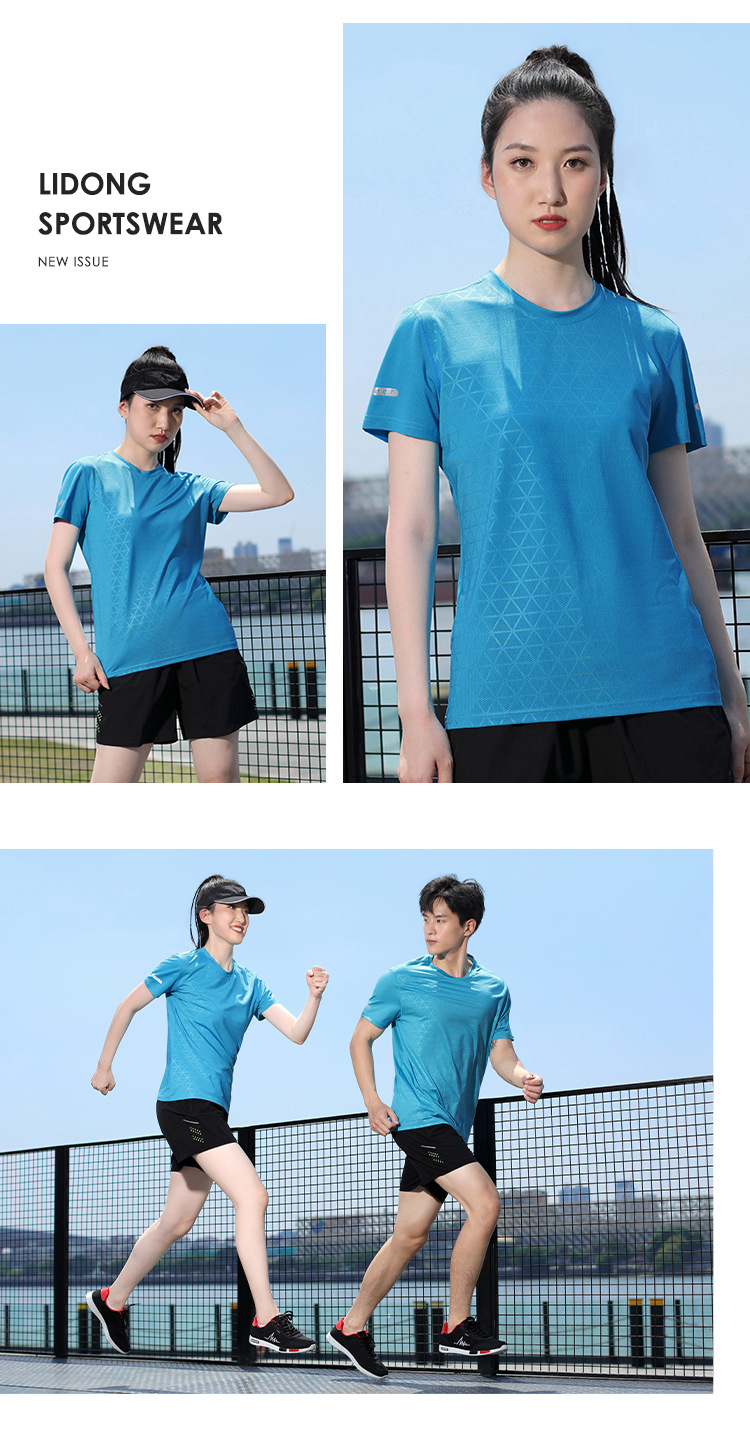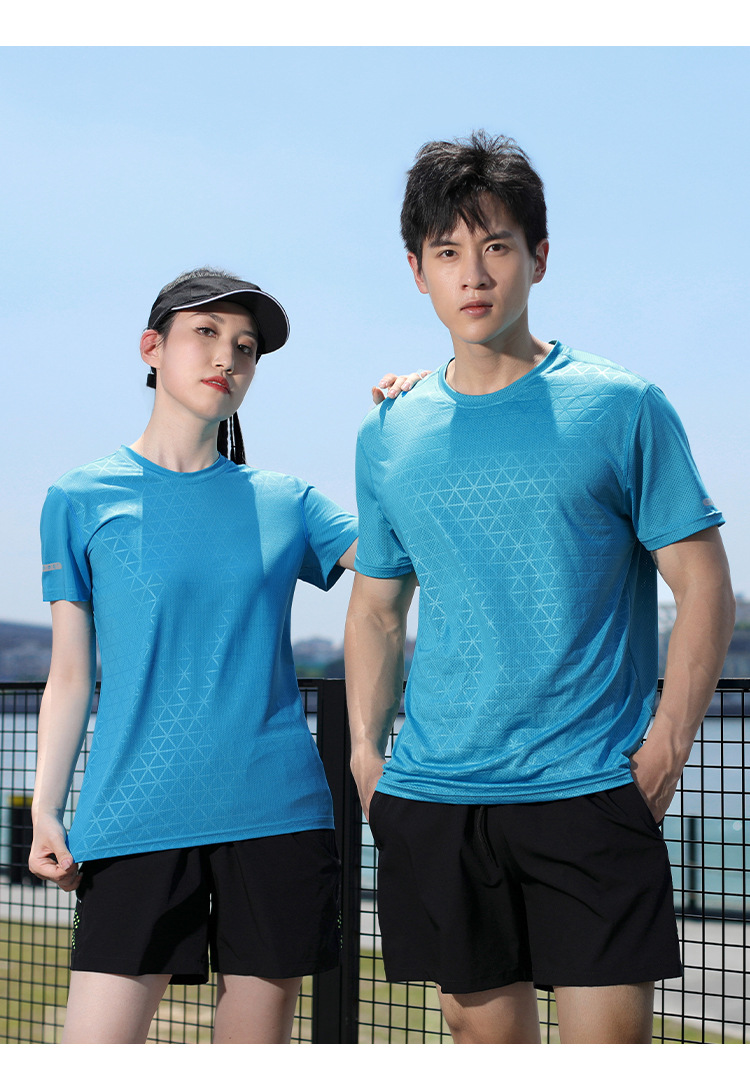 스포츠 승무원 목 빠른 건조 티셔츠 그룹 의류 달리기 피트니스 의류 남성과 여성의 아침 달리기 실크 메쉬 짧은 소매 재킷 맞춤형 도매스토어 가기