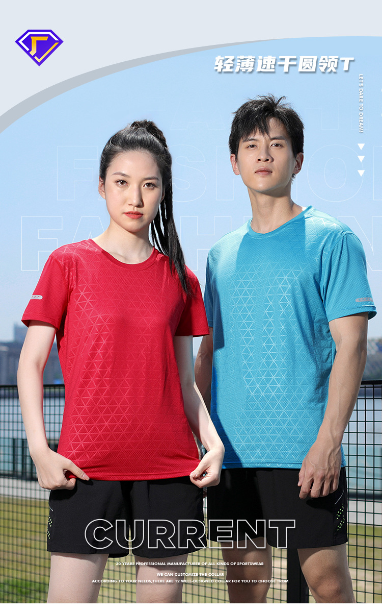 运动圆领速干t恤 团体服跑步健身衣男女晨跑丝网短袖上衣定制批发