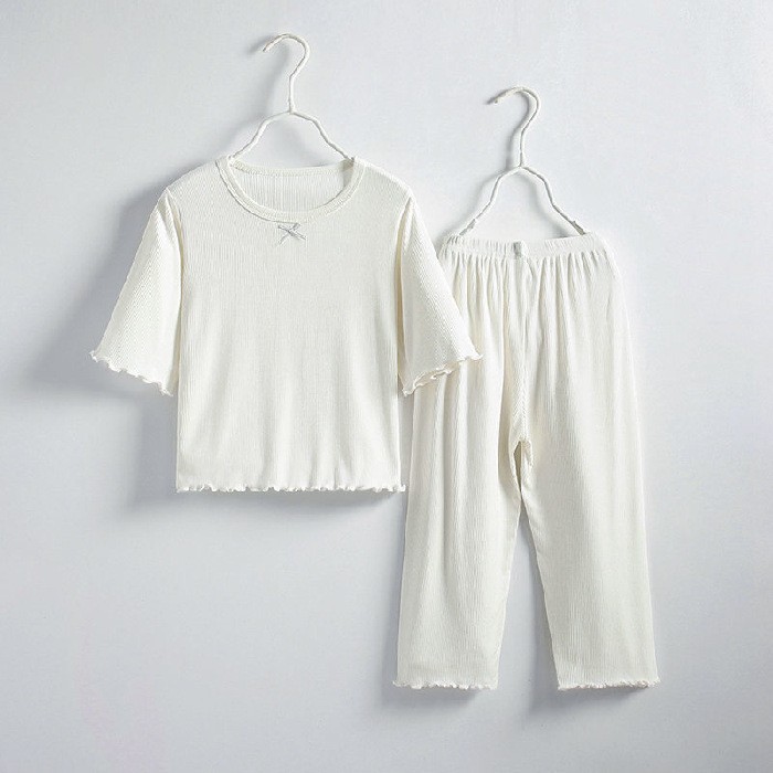 여아용 잠옷 아이스 실크 세트 얇은 모달 홈웨어 여름용 어린이 에어컨 의류 신상 반팔