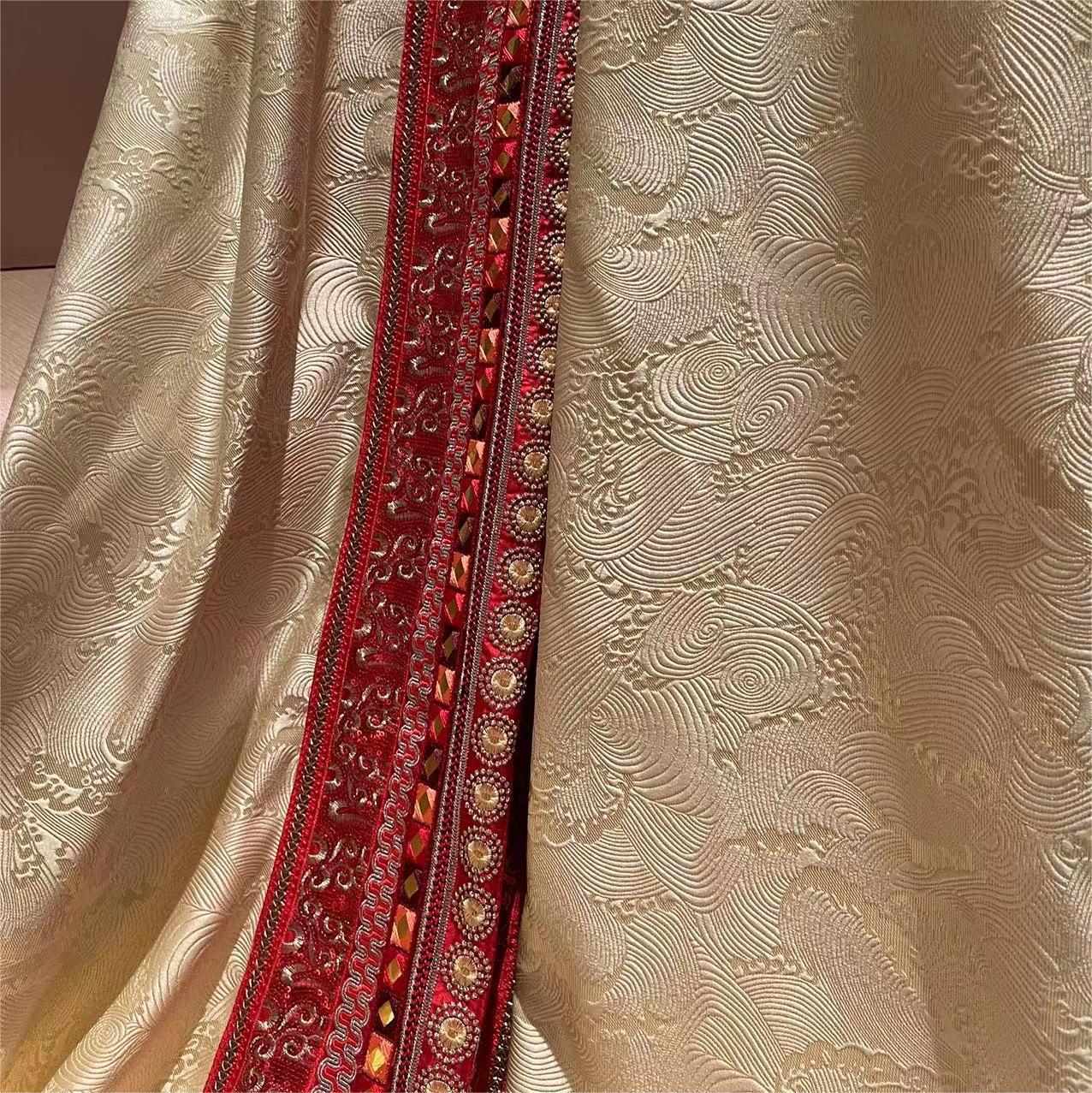 소스 제조 업체 새로운 중국식 Xiangyun 자카드 커튼 고급 빨간색 자수 웨딩 룸 수직 커튼 웨딩 침실 그늘 커튼