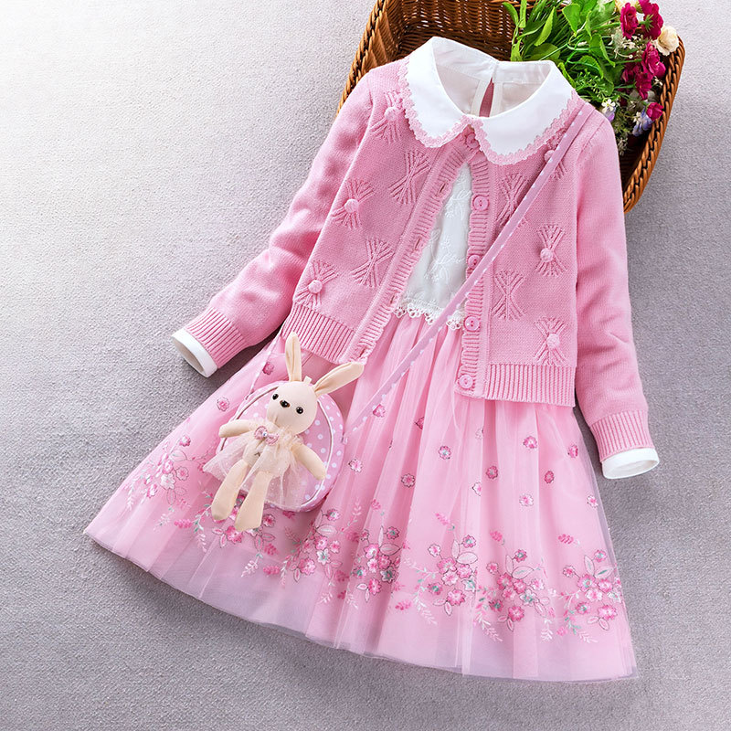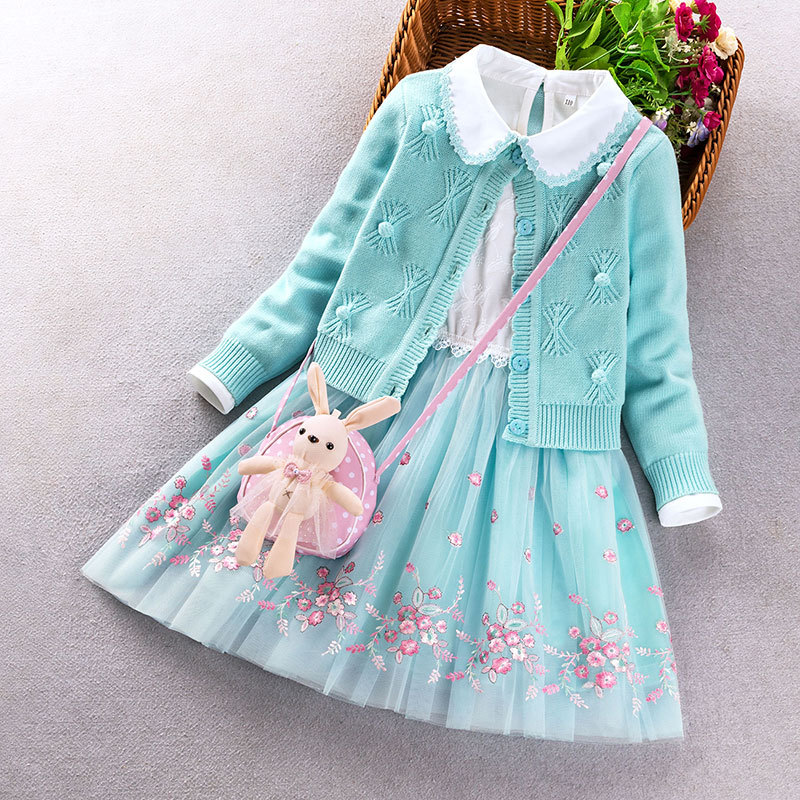 소녀 원피스 2022 가을 새 소녀 패션 세련된 공주 원피스 어린 소녀 스웨터 세트 투피스 세트스토어 가기