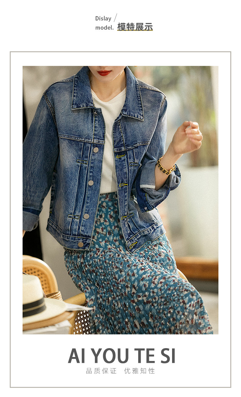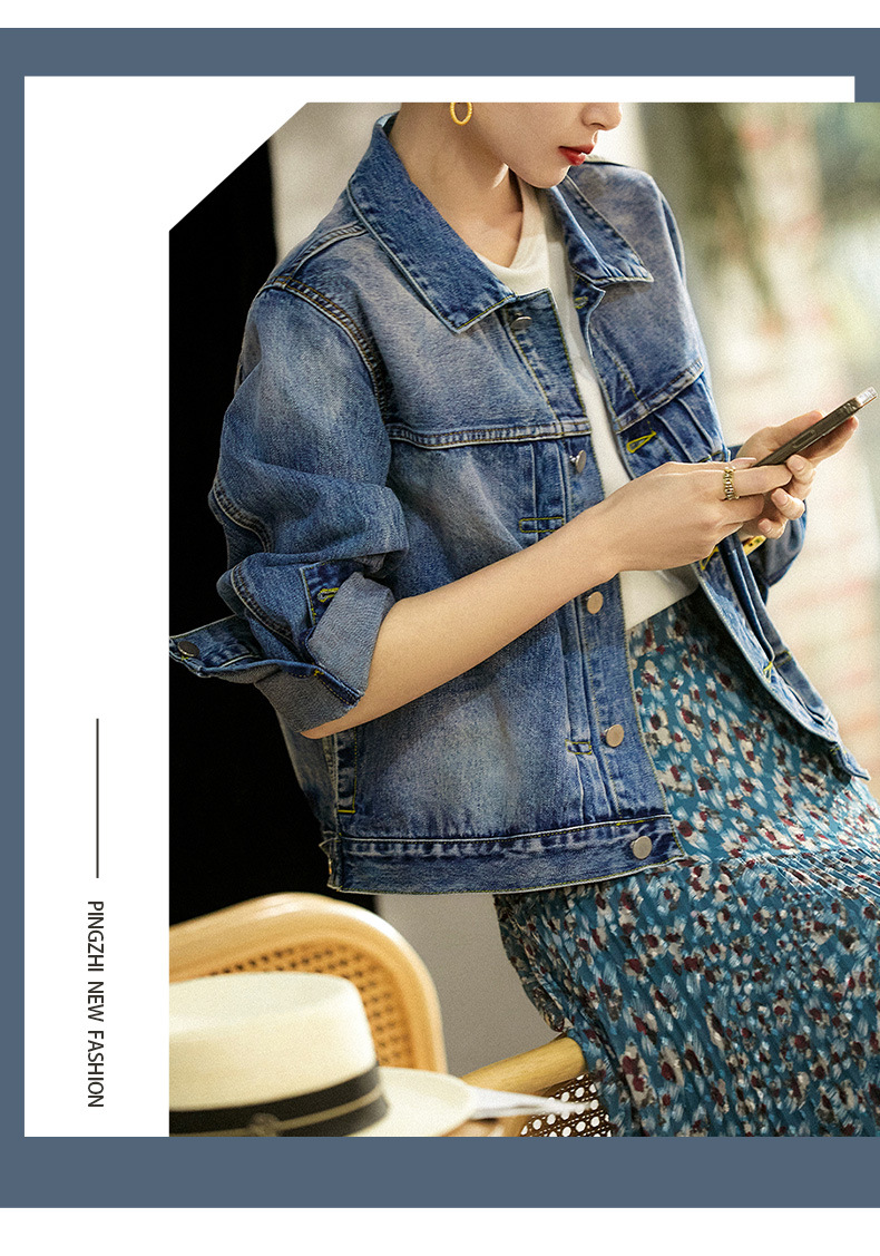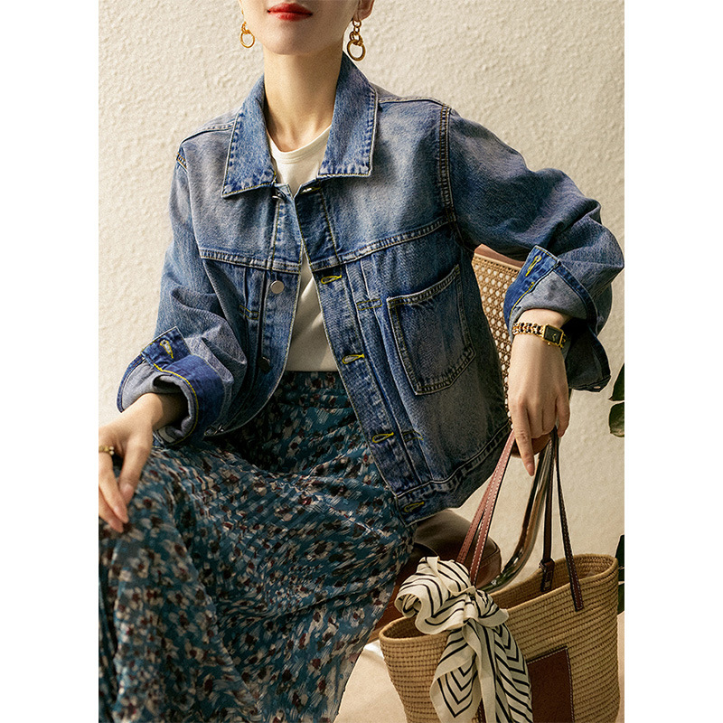 라펠 데님 재킷 2026 봄 신상 여성용 짧은 데님 코트 봄 가을 상의 배색 루즈핏스토어 가기