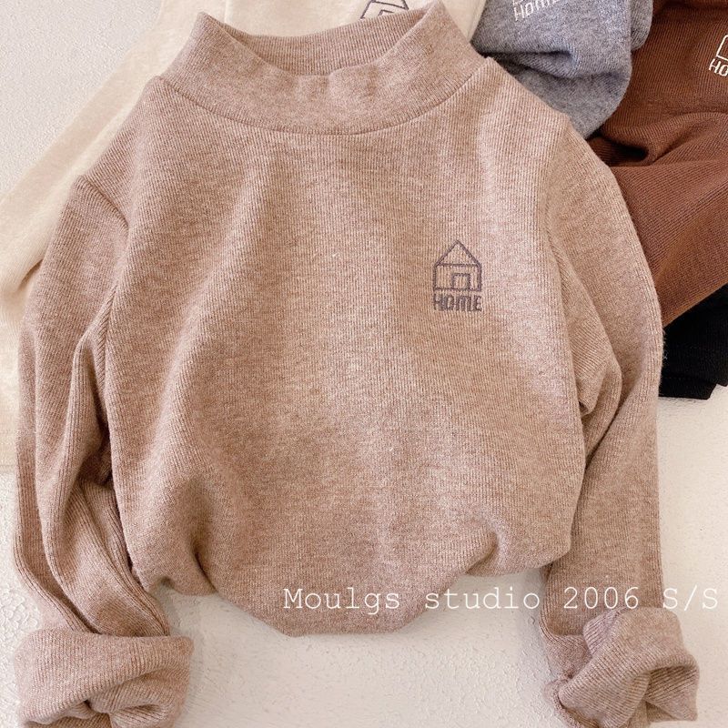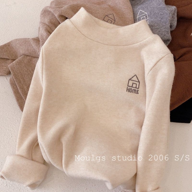어린이 바닥 셔츠 가을과 겨울 새로운 어린이 반 높이 칼라 따뜻한 내부 아기 탑 소년의 긴팔 티셔츠스토어 가기