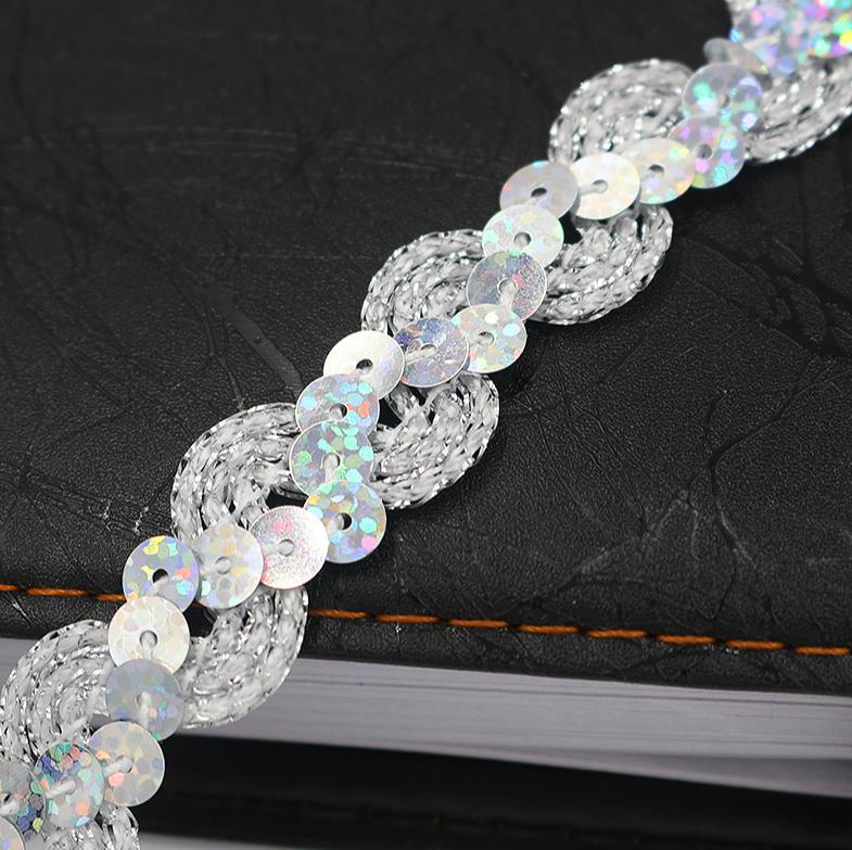 단색 1.5CM 웨이브 S 자형 스팽글 비드 레이스 웨빙 의류 액세서리 DIY 성능 의류 도매스토어 가기