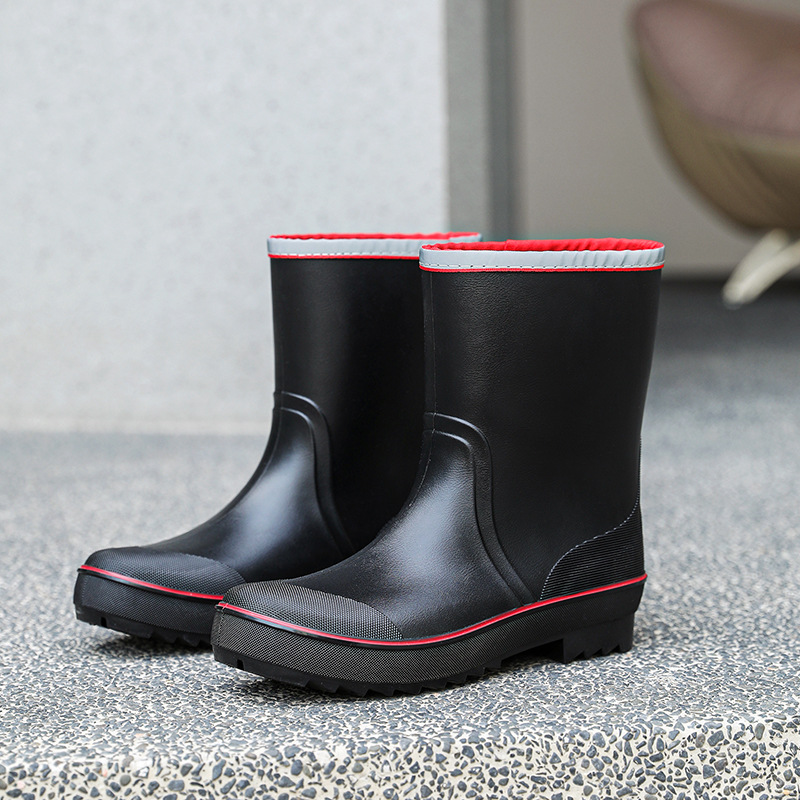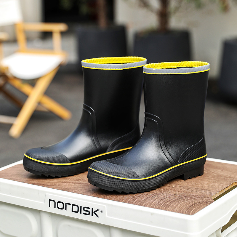 새로운 영국 장화 남성용 중간 튜브 방수 캐주얼 장화 경량 주방 미끄럼 방지 고무 신발 작업용 두꺼운 바닥 물 신발